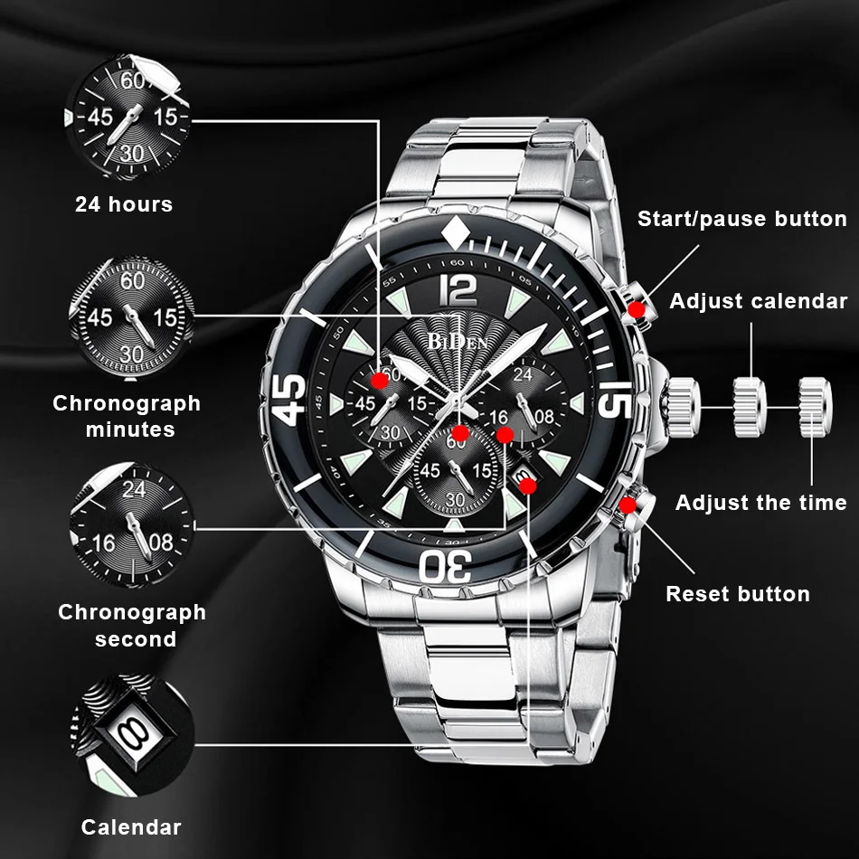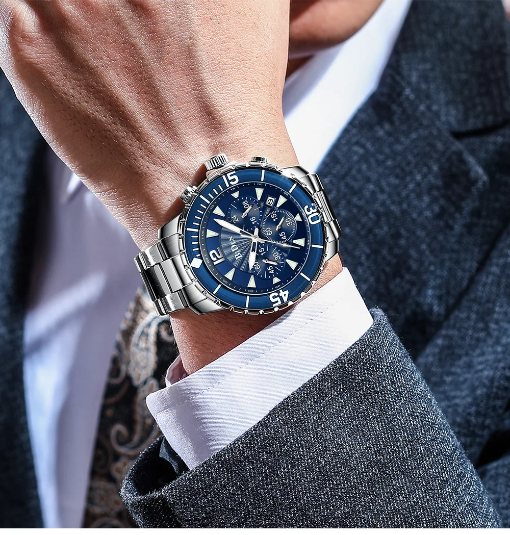 Часы наручные BiDen Мужские кварцевые с автоматическим хронографом,...