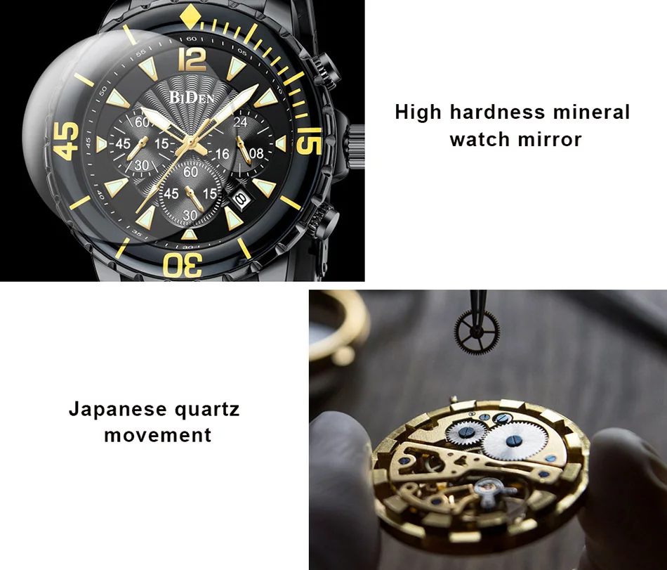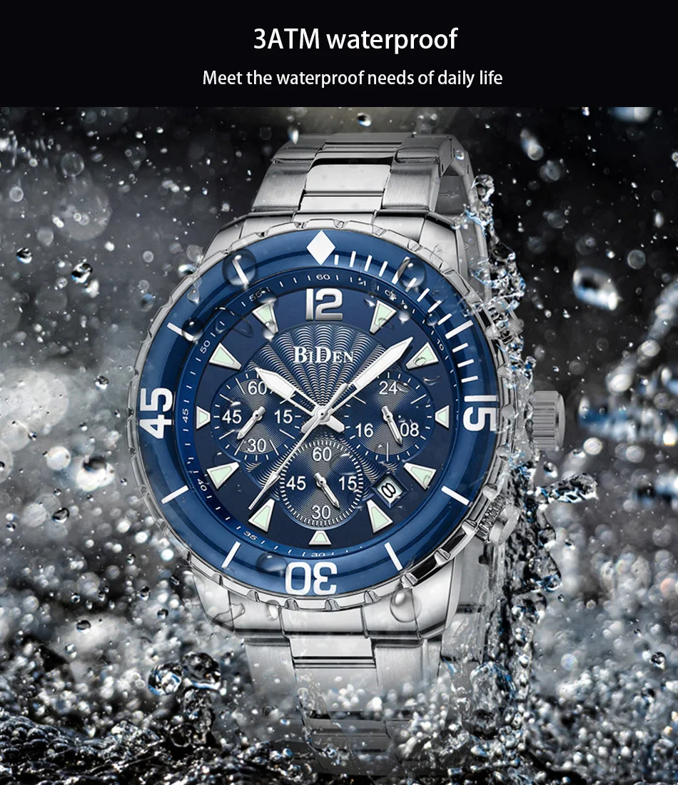 Часы BIDEN мужские спортивные с хронографом, водонепроницаемые анал...