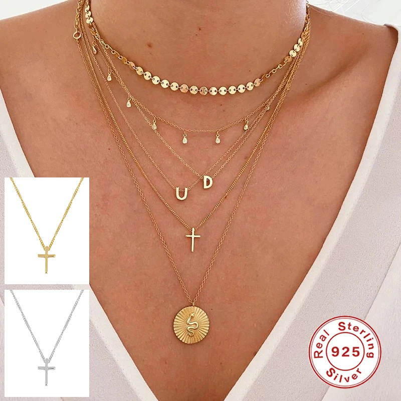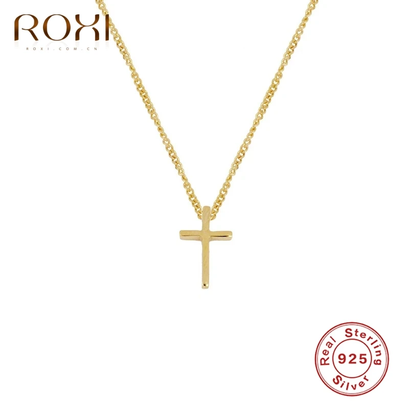 ROXI минимализм крест ожерелье, подвеска, колье, для женщин, необычных ювелирных изделий 925 стерлингового серебра Золотая цепочка ожерелье в стиле Collares Bijoux Femme (украшения своими руками)