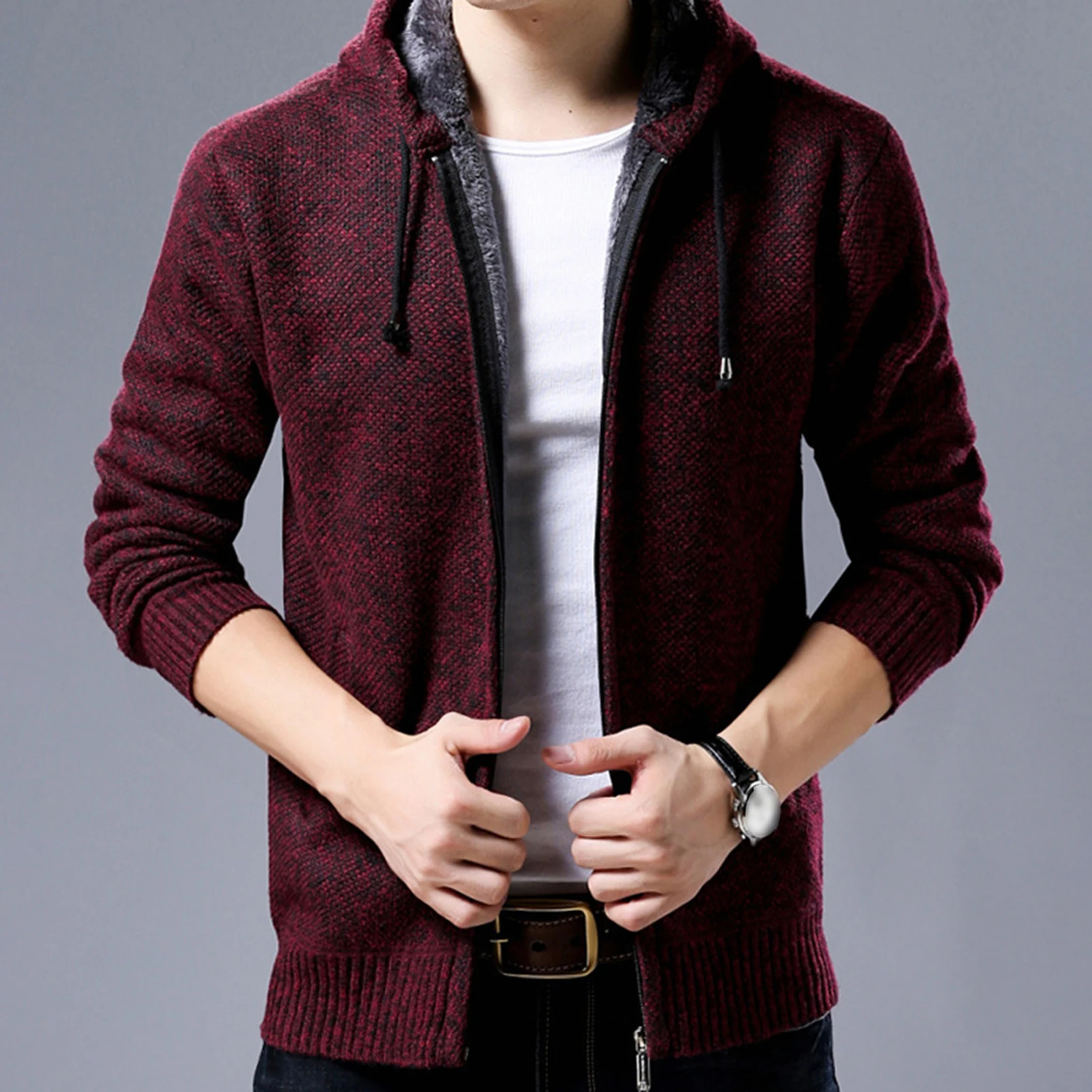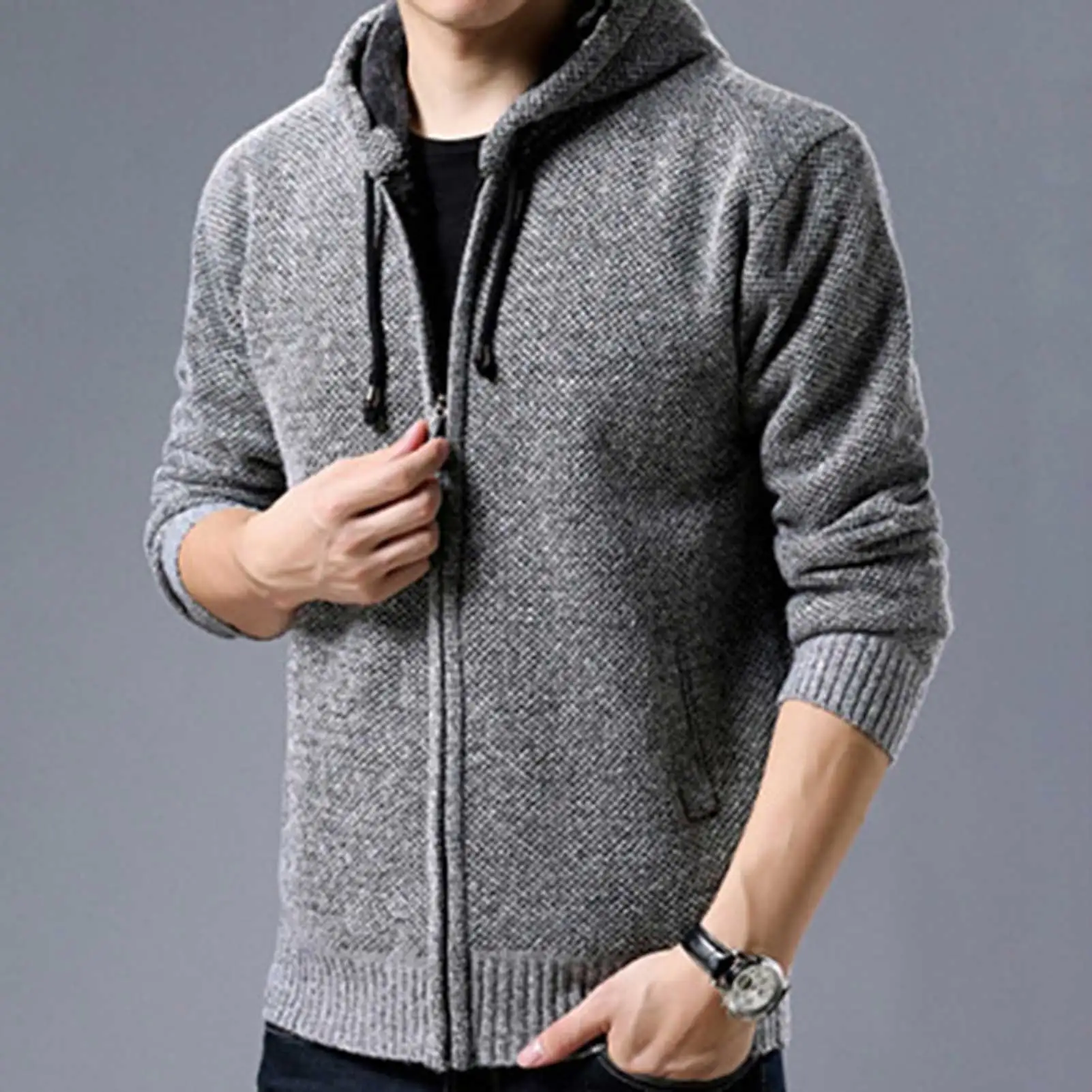 Мужская осенне-зимняя трикотажная куртка с длинным рукавом, плюшевой подкладкой и карманами на молнии