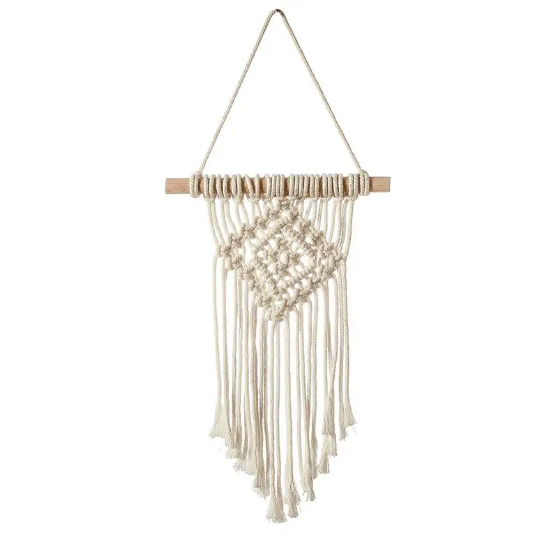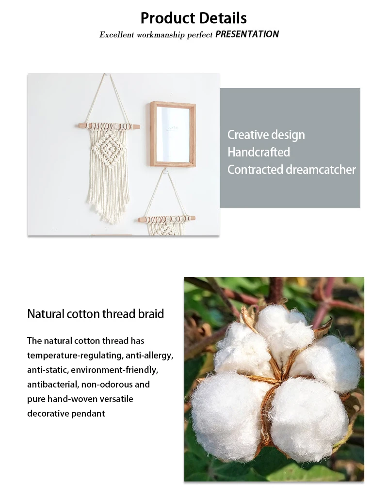 Материал: хлопковая веревка Длина гобелена: 45 см Длина ручки: 20 см Вес: 58 г Посылка включает: 1 х гобелен 1 х деревянная палочка