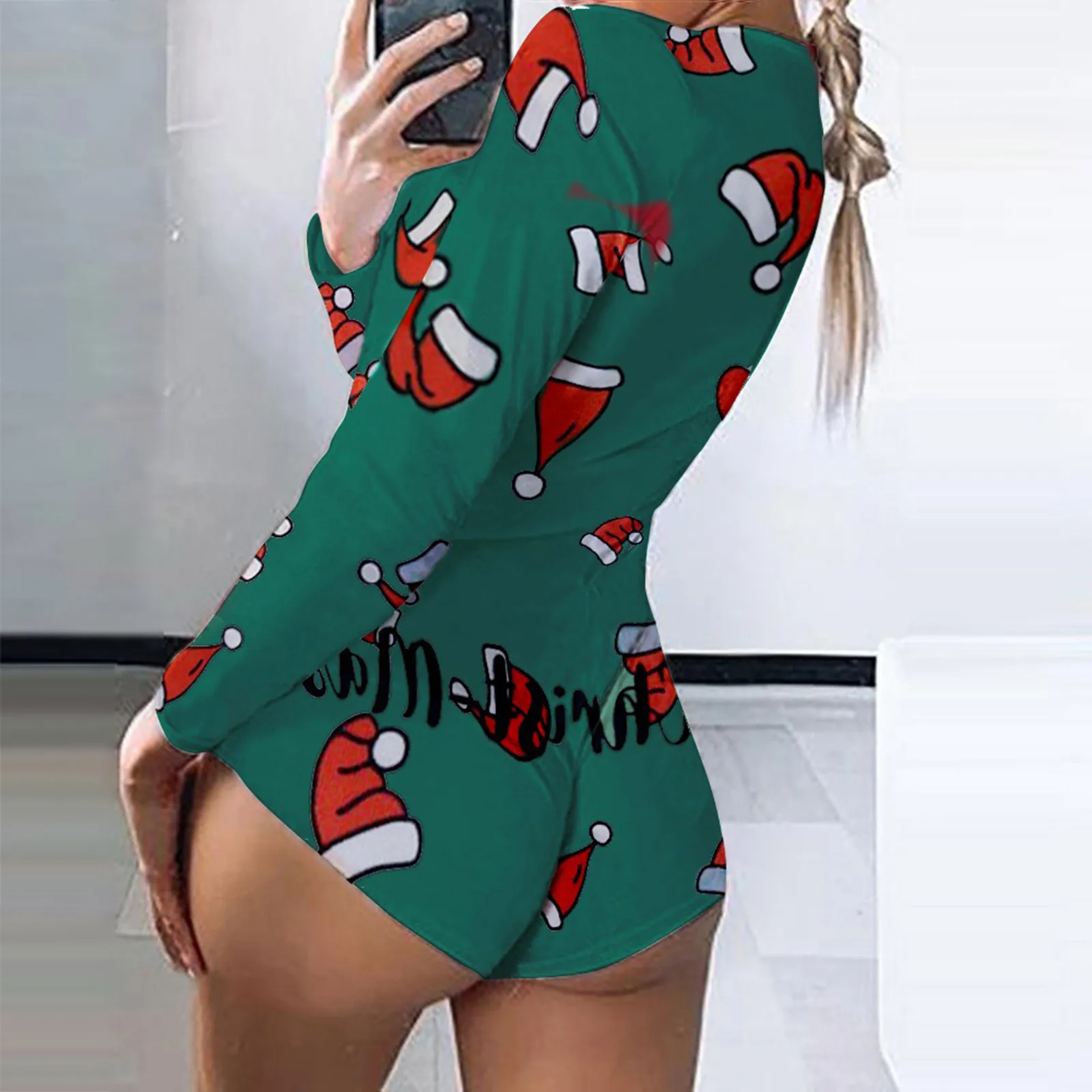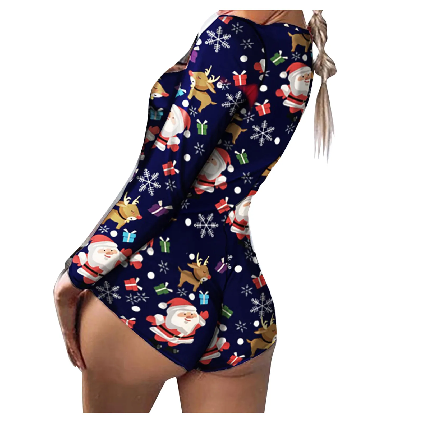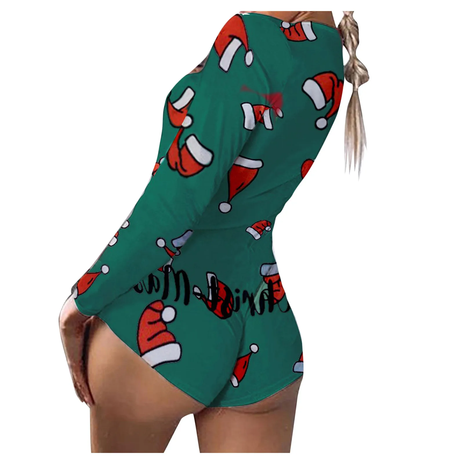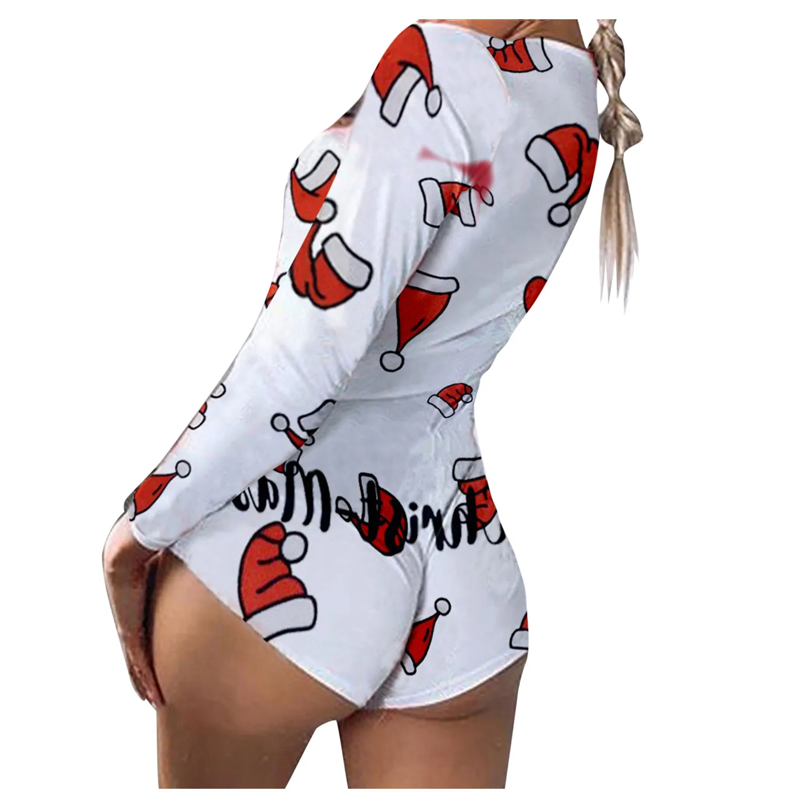Сексуальное Женское боди с длинным рукавом, Рождественский Декор, Глубокий V-образный вырез, обтягивающее эластичное трико, топ на пуговицах, Короткий комбинезон, Пижамный комбинезон