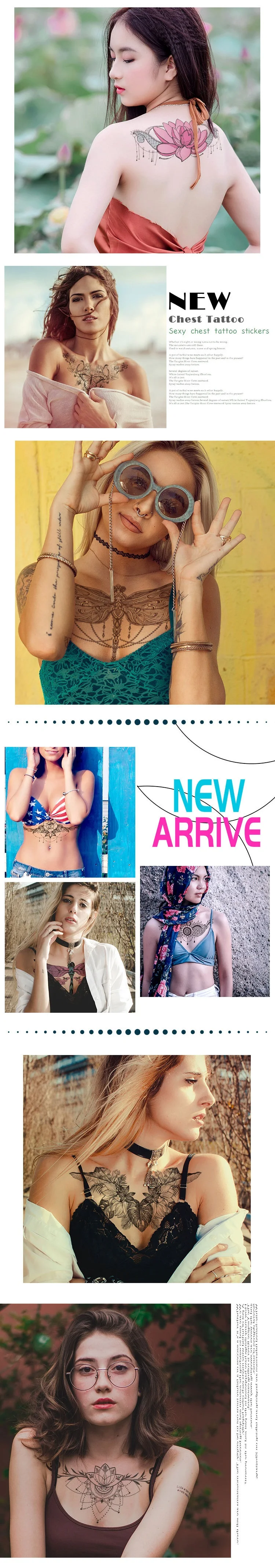 Татуировка на грудь и спину для взрослых, водостойкая Временная наклейка с изображением мандалы, большого размера, 38 видов