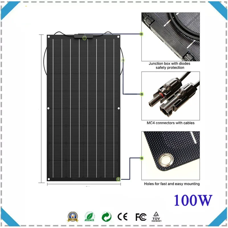 ETFE Гибкая солнечная панель 100 Вт 200 Вт 300 Вт 400 Вт Панель Солнечная монокристаллическая солнечная батарея 12 В/24 В зарядка батареи для RV/лодки/автомобиля
