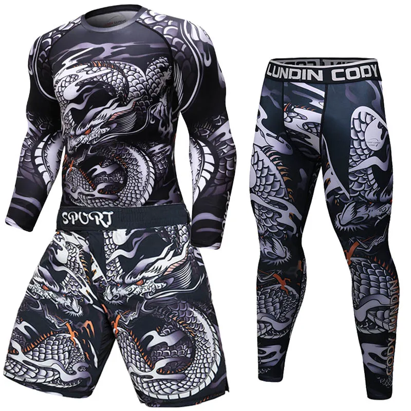Рашгард для фитнеса спортивный костюм с принтом дракона, ММА, Мужск...