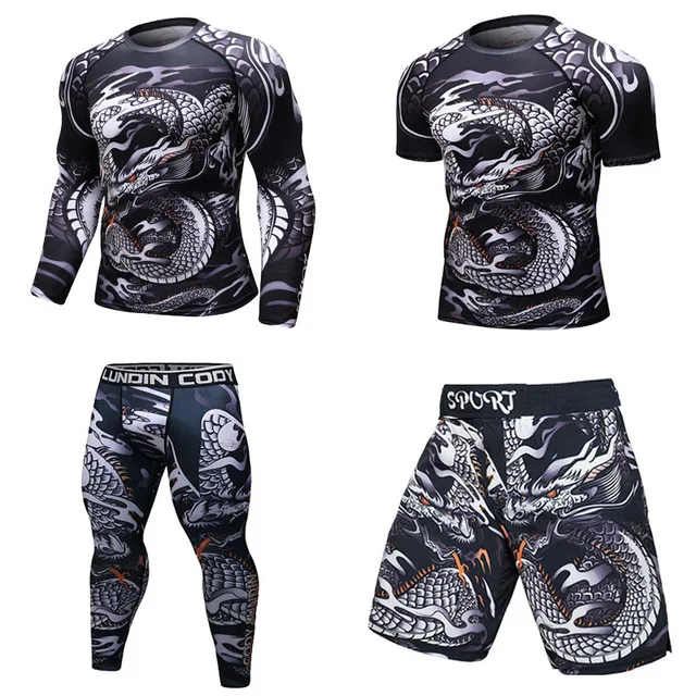 BJJ Rashguard MMA футболки + брюки змея сыпь спортивный костюм для ...