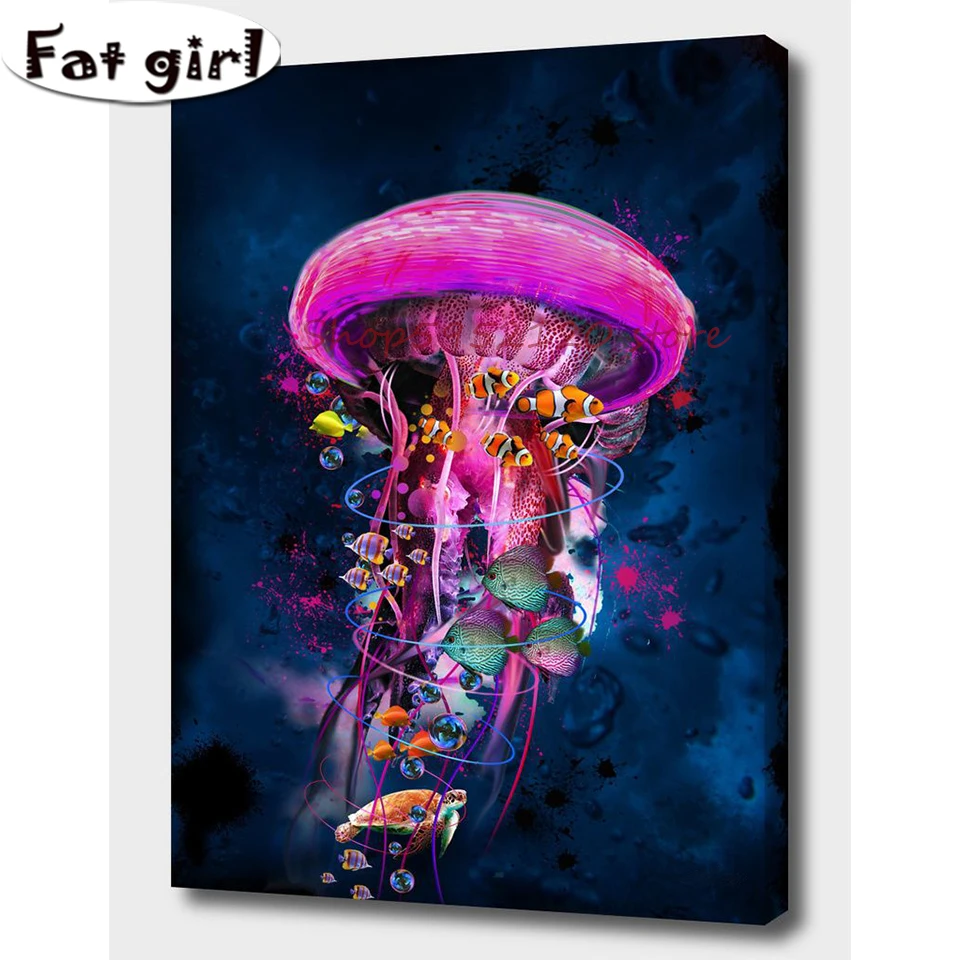 Абстрактное искусство Медузы рыба Черепашки настенный плакат алмазная живопись 5D Сделай Сам мозаика Вышивка крестом квадратная круглая дрель Декор ручной работы