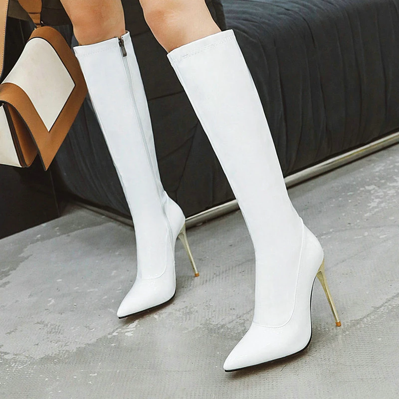 Женские сапоги на очень высоком каблуке, красные или белые сапоги д...