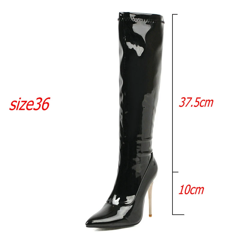 Европейские и американские пикантные зимние женские высокие сапоги премиум-класса из лакированной кожи женские сапоги с боковой молнией и острым носком красные теплые сапоги