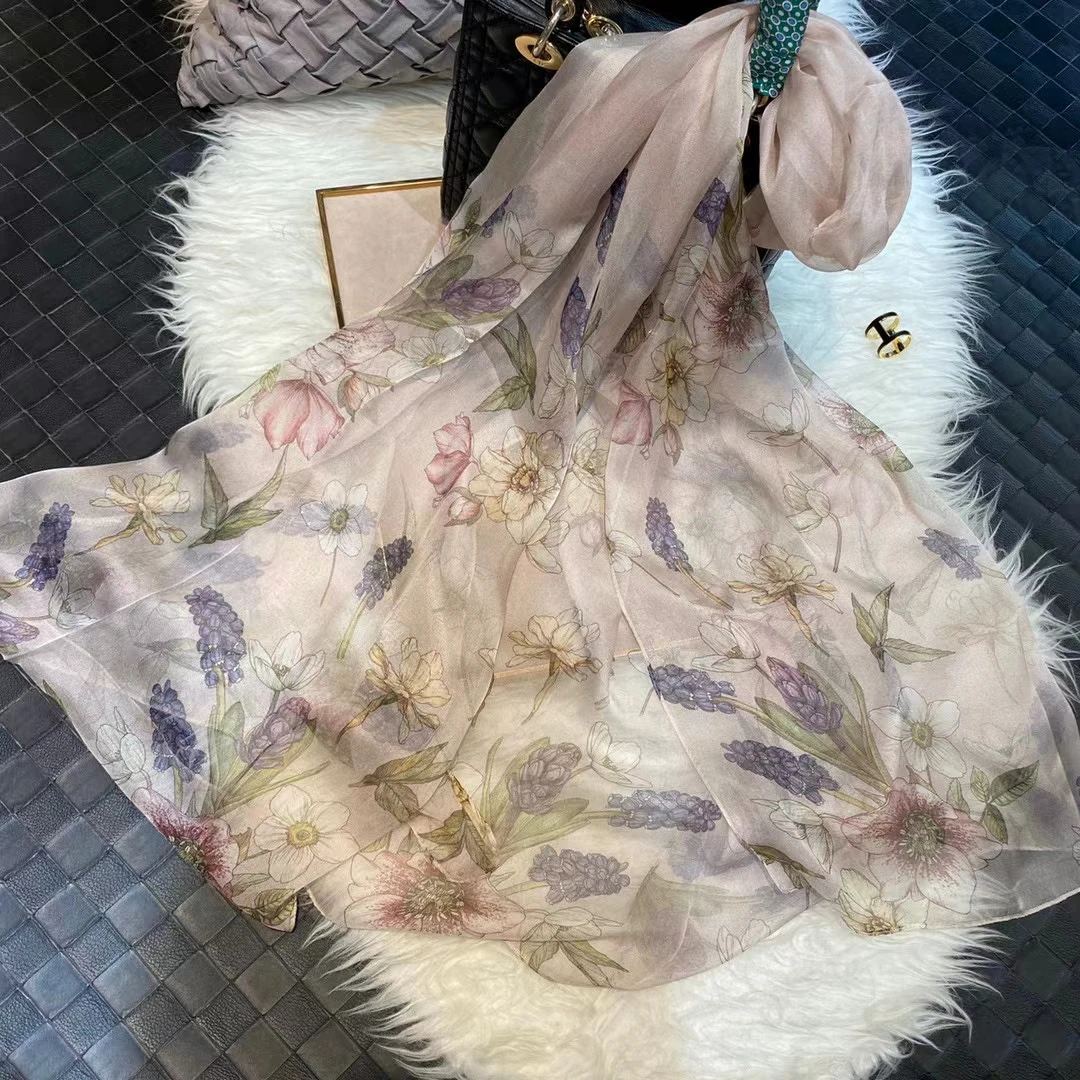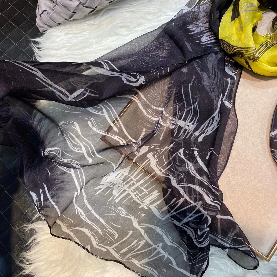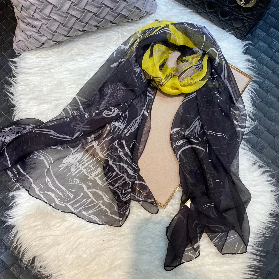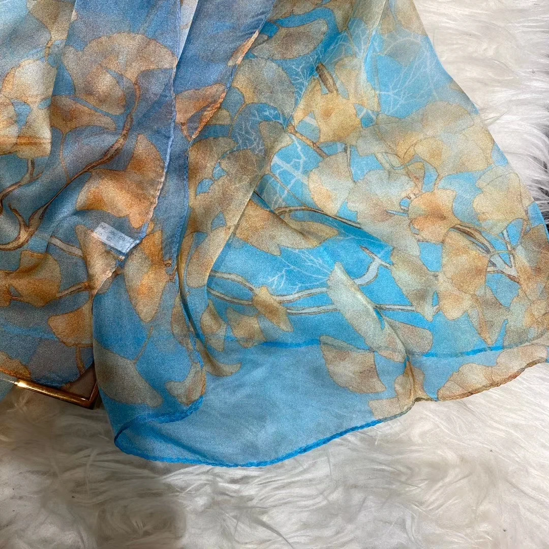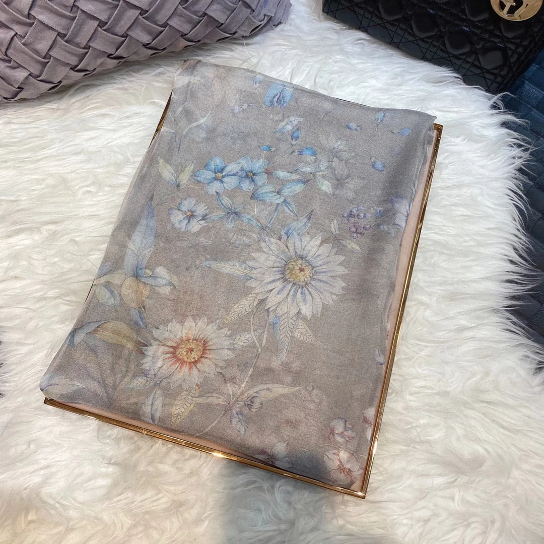 Модный Темно-Синий Шелковый шарф, шаль с принтом, роскошные женские длинные шарфы из 100% чистого шелка, элегантный шелковый шарф с цветочным принтом, 110 * см