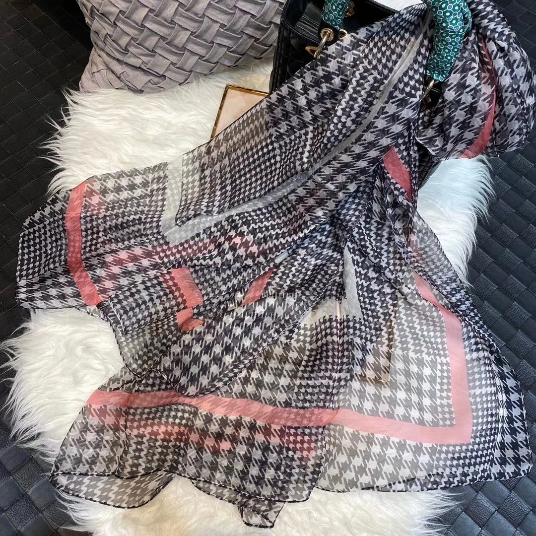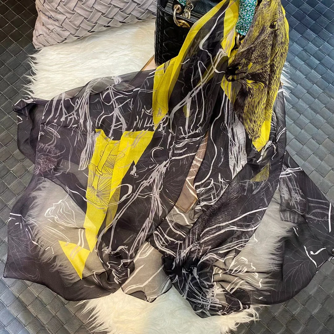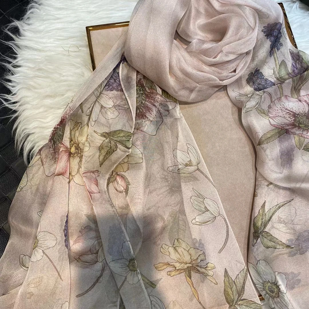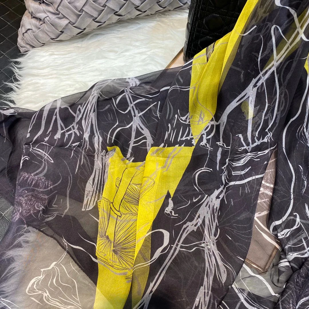 Модный Темно-Синий Шелковый шарф, шаль с принтом, роскошные женские длинные шарфы из 100% чистого шелка, элегантный шелковый шарф с цветочным принтом, 110 * см