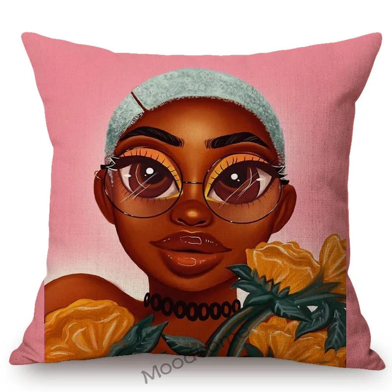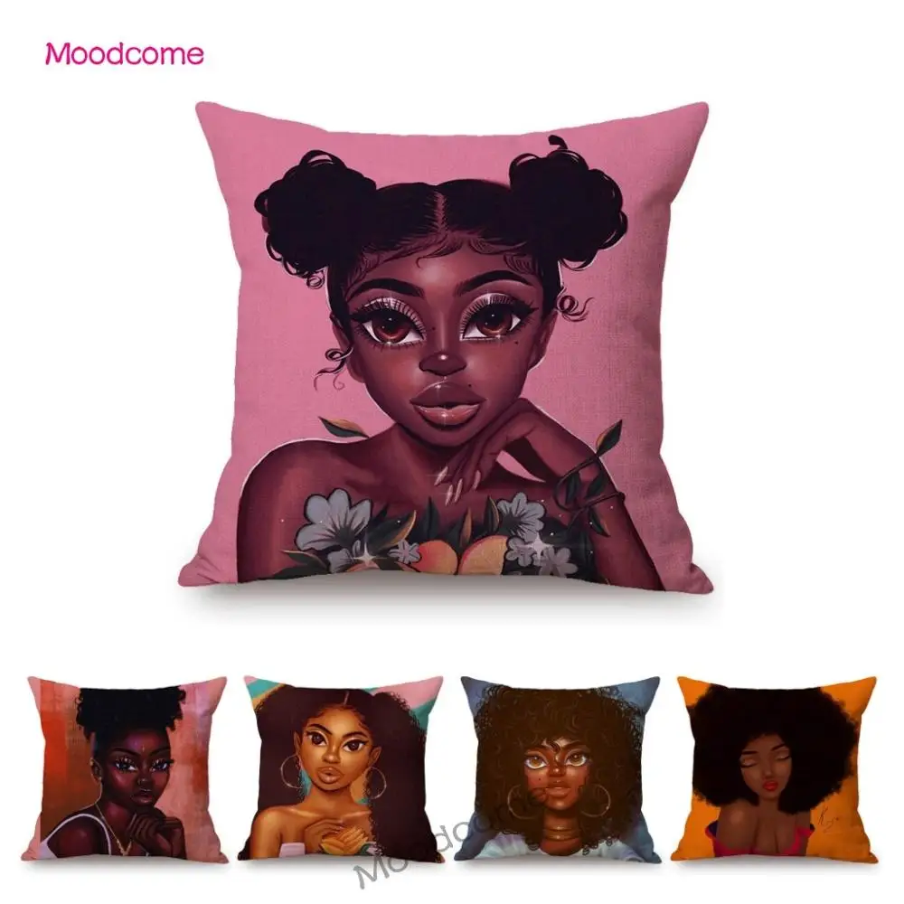 Модная наволочка из хлопка и льна с изображением девушки из мультфи...