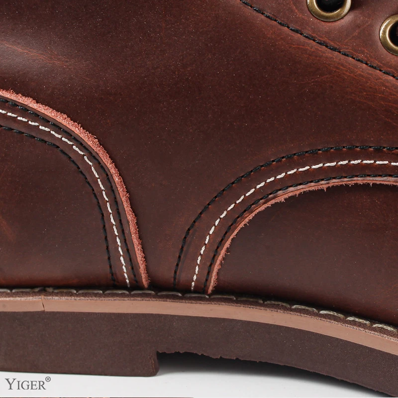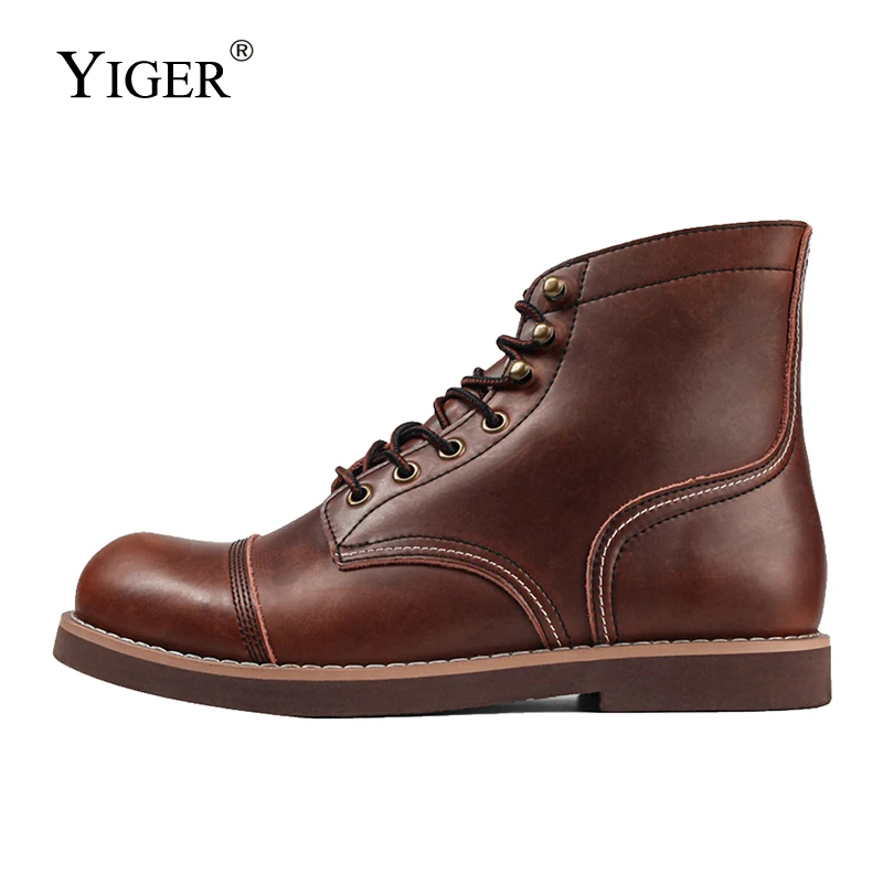 YIGERмужские повседневные Ботинки Martin; Мужские ботинки в западном стиле; Ботинки в байкерском стиле из натуральной кожи; Мужские ботильоны на шнуровке; Рабочие ботинки в стиле ретро