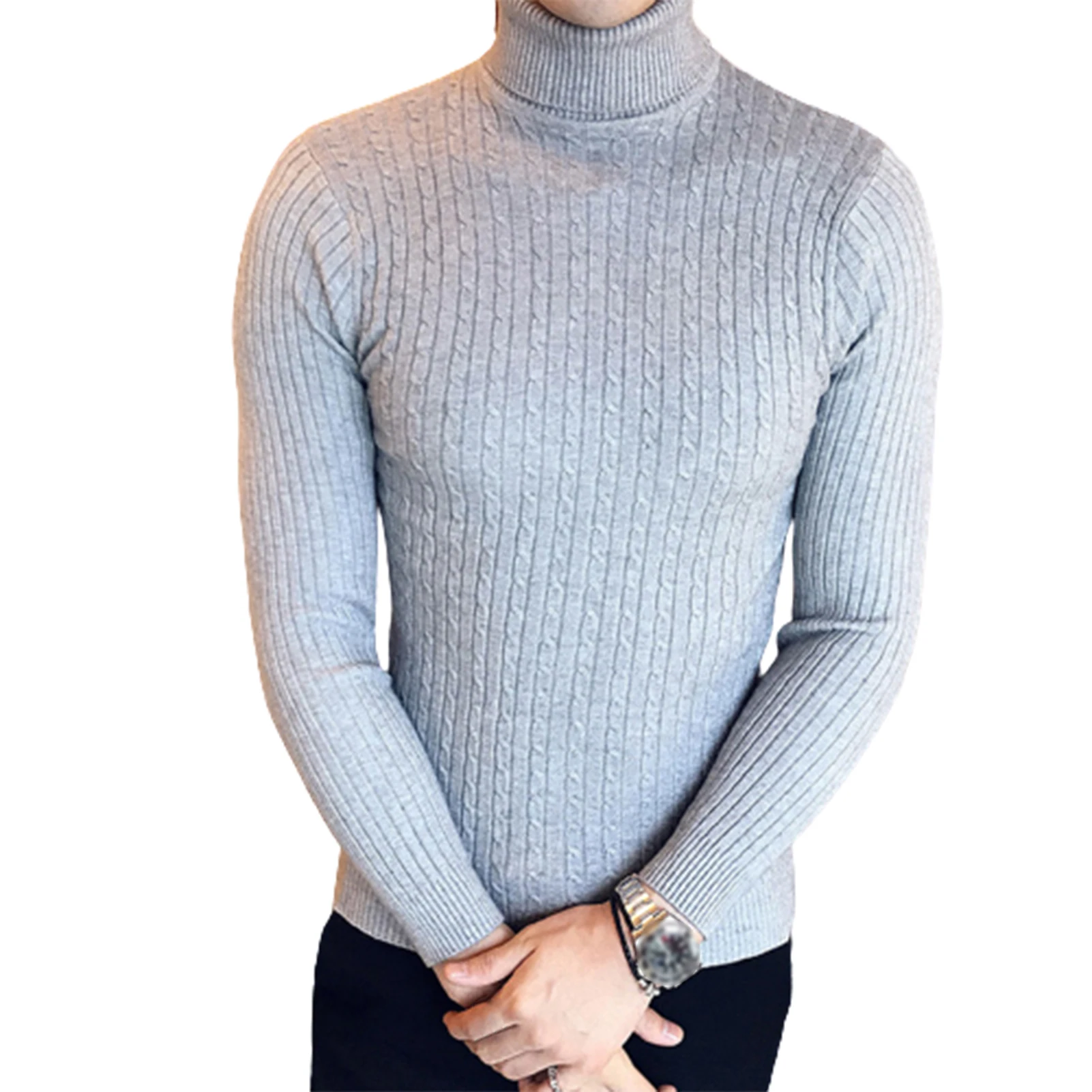 Мужской зимний теплый свитер с длинным рукавом и высоким воротом, облегающий пуловер, вязаный пуловер с завязками, мужские вязаные Джемперы, мужская одежда