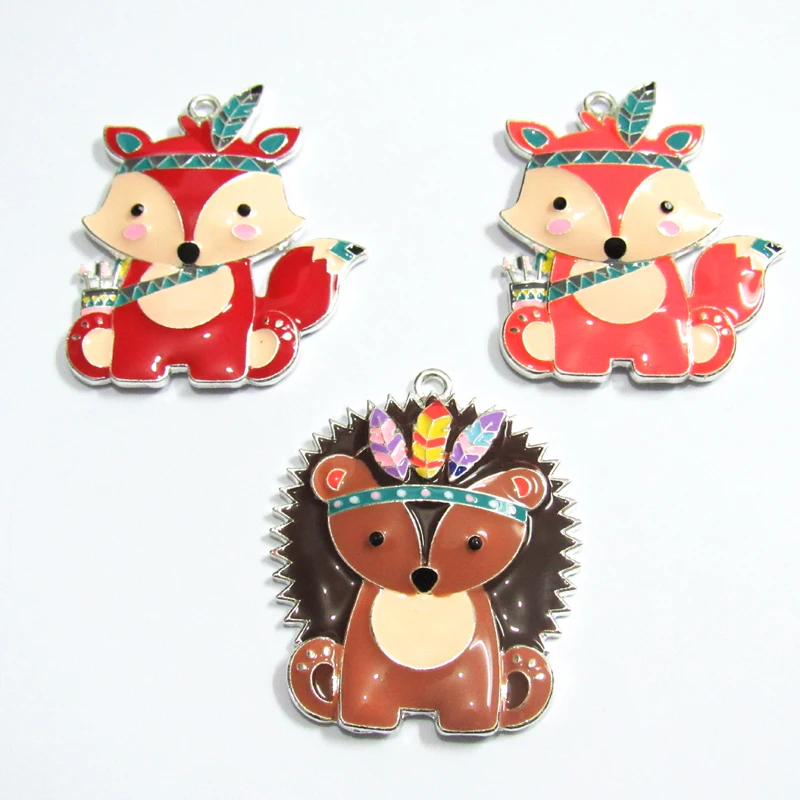 Оптовая продажа 10 шт./пакет, полностью эмалированные племенные животные/«Лиса», «Ежик Кулоны из нержавеющей стали для мoднaя дeтскaя ожерелье модного дизайна