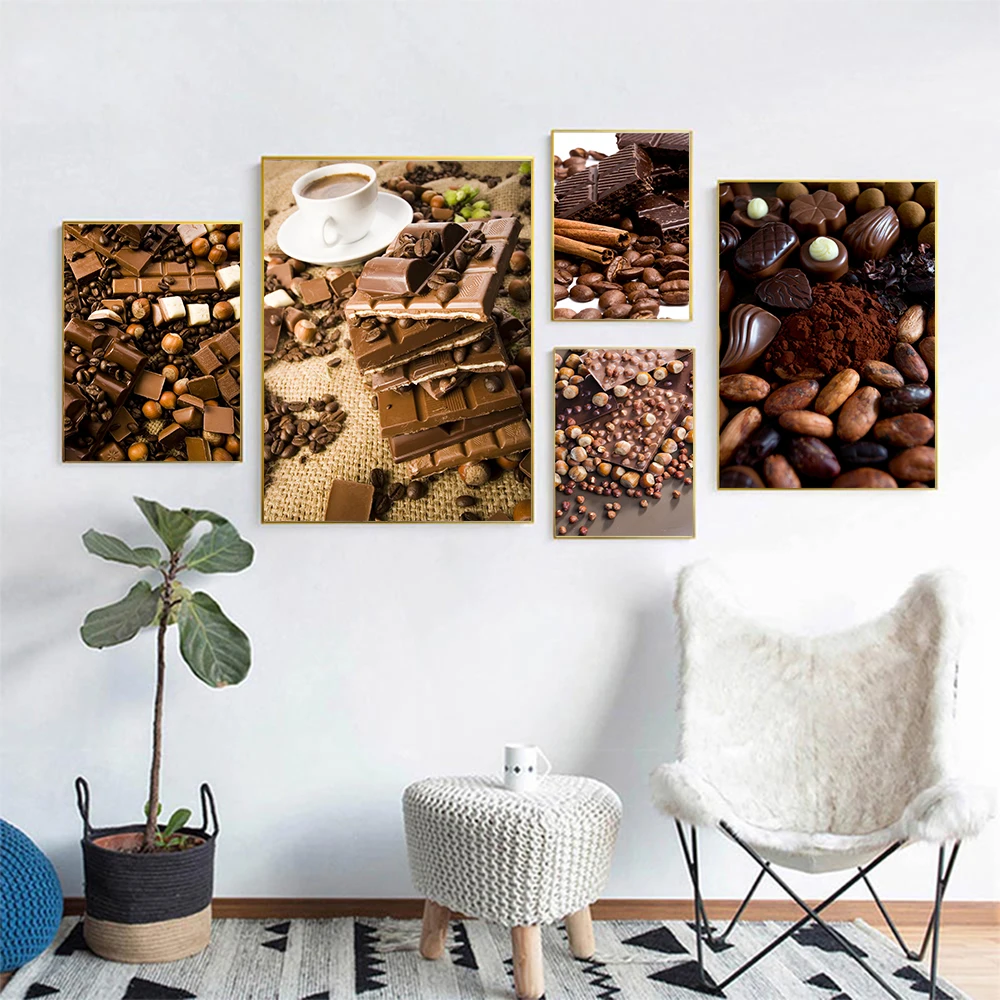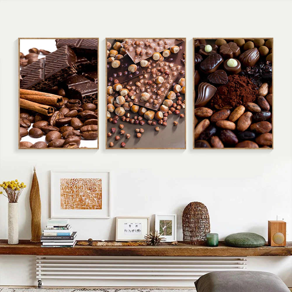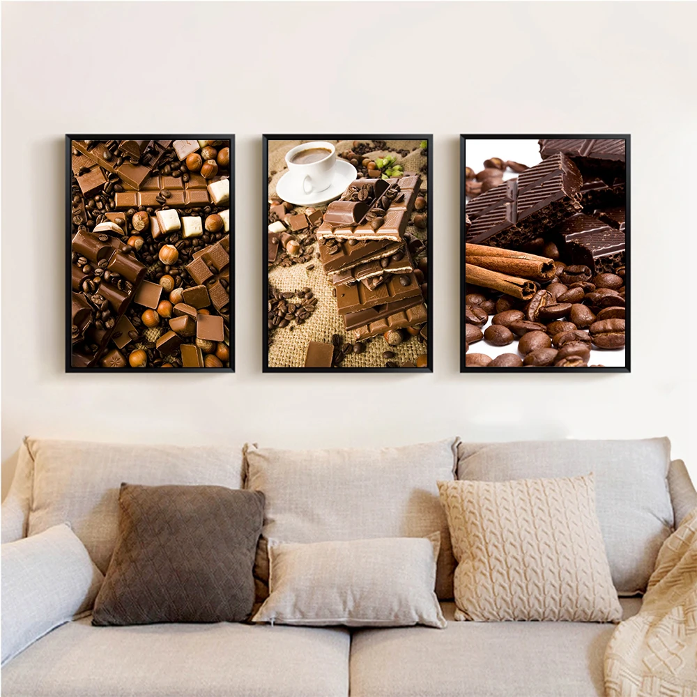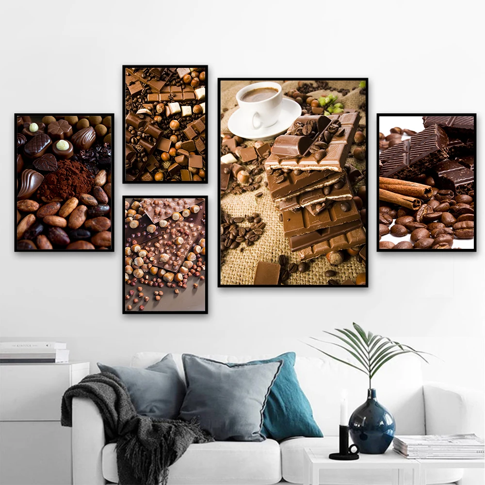 Кухонный плакат, шоколадные орехи, кофейные бобы, кофейные напитки, холст, печать, настенная живопись, картина, кухня, ресторан, Декор