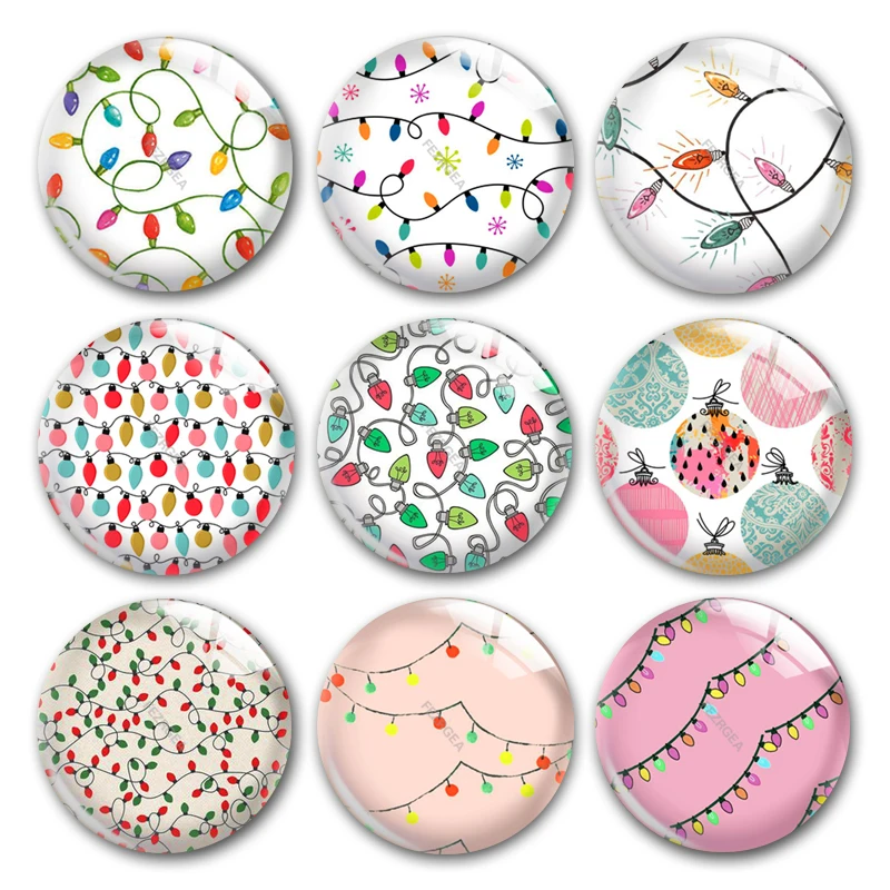 Рождественские разноцветные огни ручной работы, зимние круглые фото стеклянные кабошоны с плоской задней стороной, фурнитура для изготовления ювелирных изделий своими руками