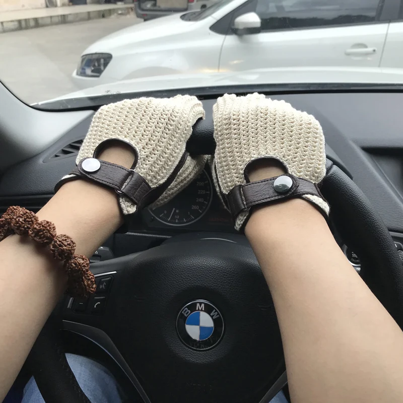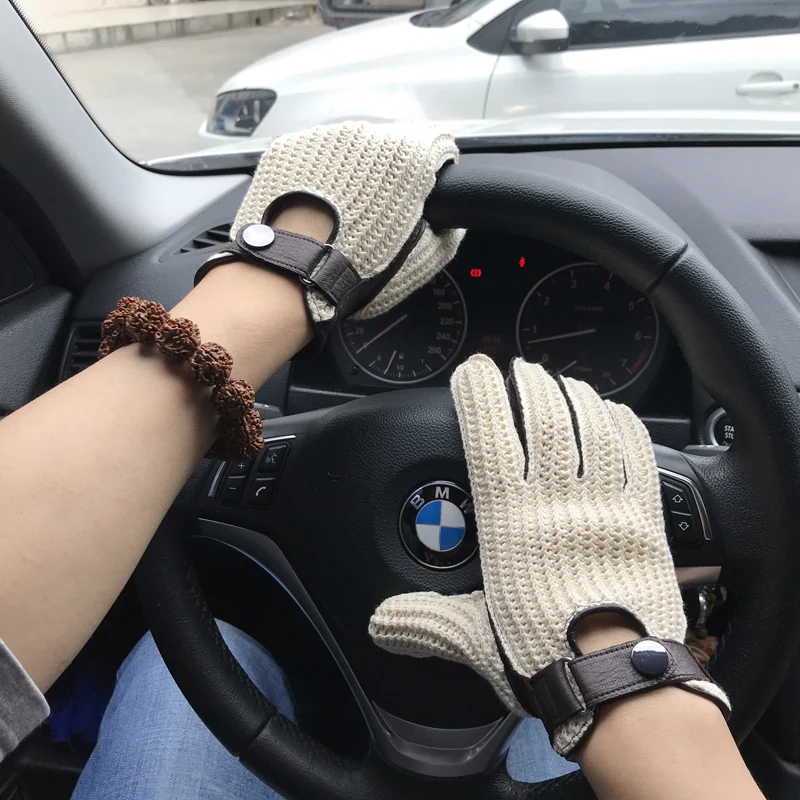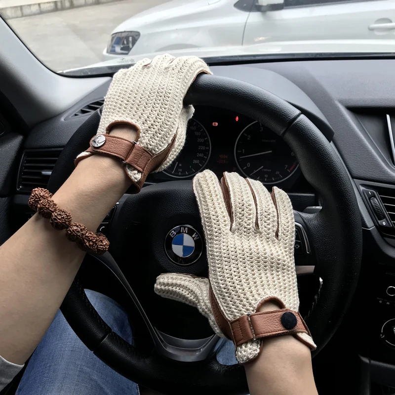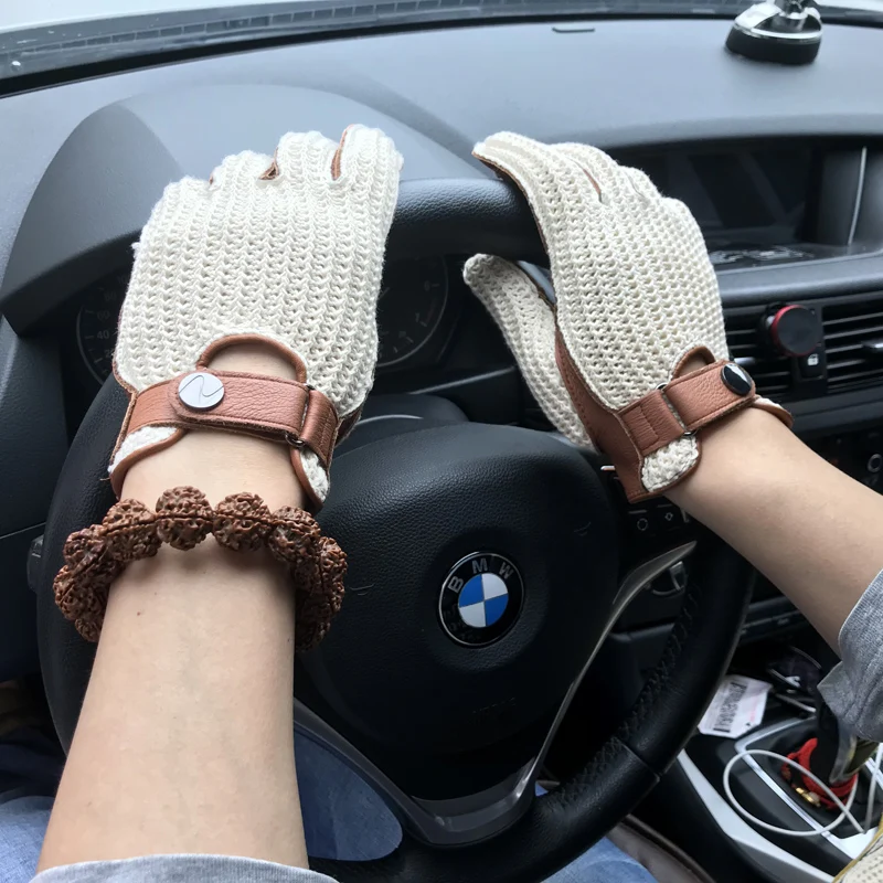 Перчатки мужские из козьей кожи, вязаные и кожаные дышащие митенки без подкладки, для вождения
