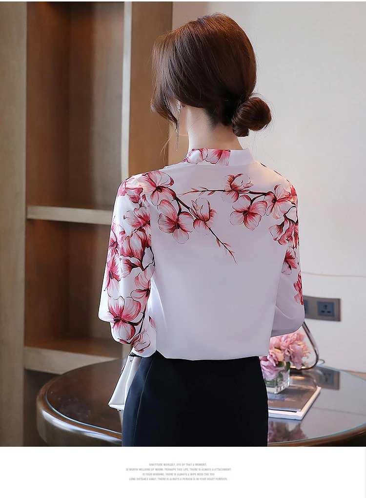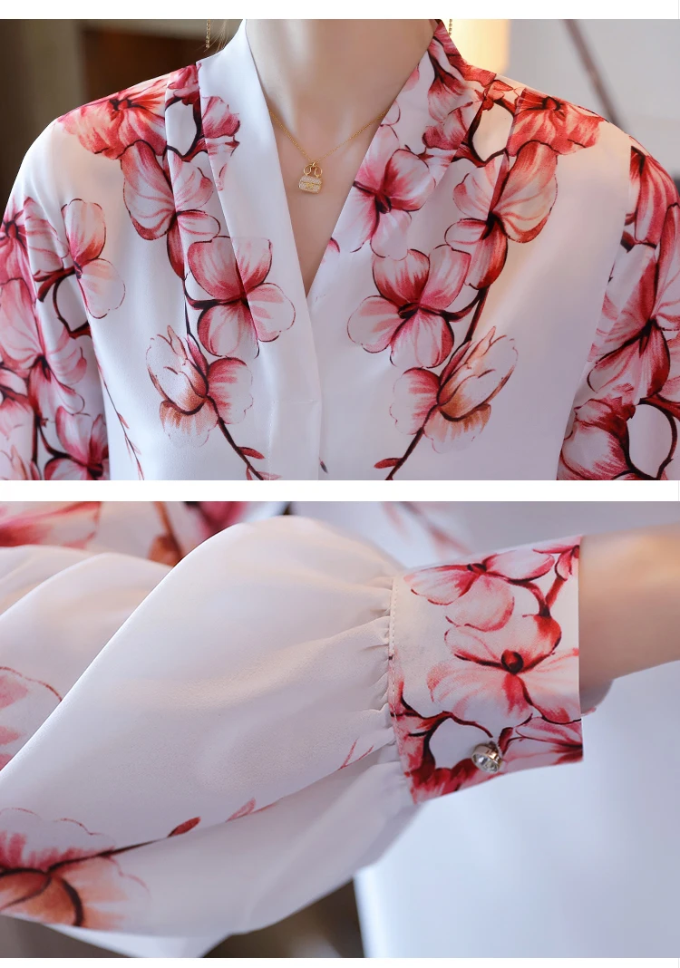 Женская шифоновая блузка с длинным рукавом и V-образным вырезом