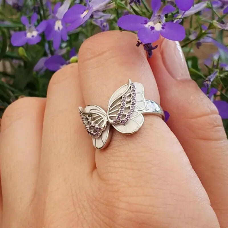 Белый фиолетовый кристалл кольца в форме бабочки для женщин модные вечерние аксессуары для девочек Подарок на годовщину кольцо ювелирные изделия