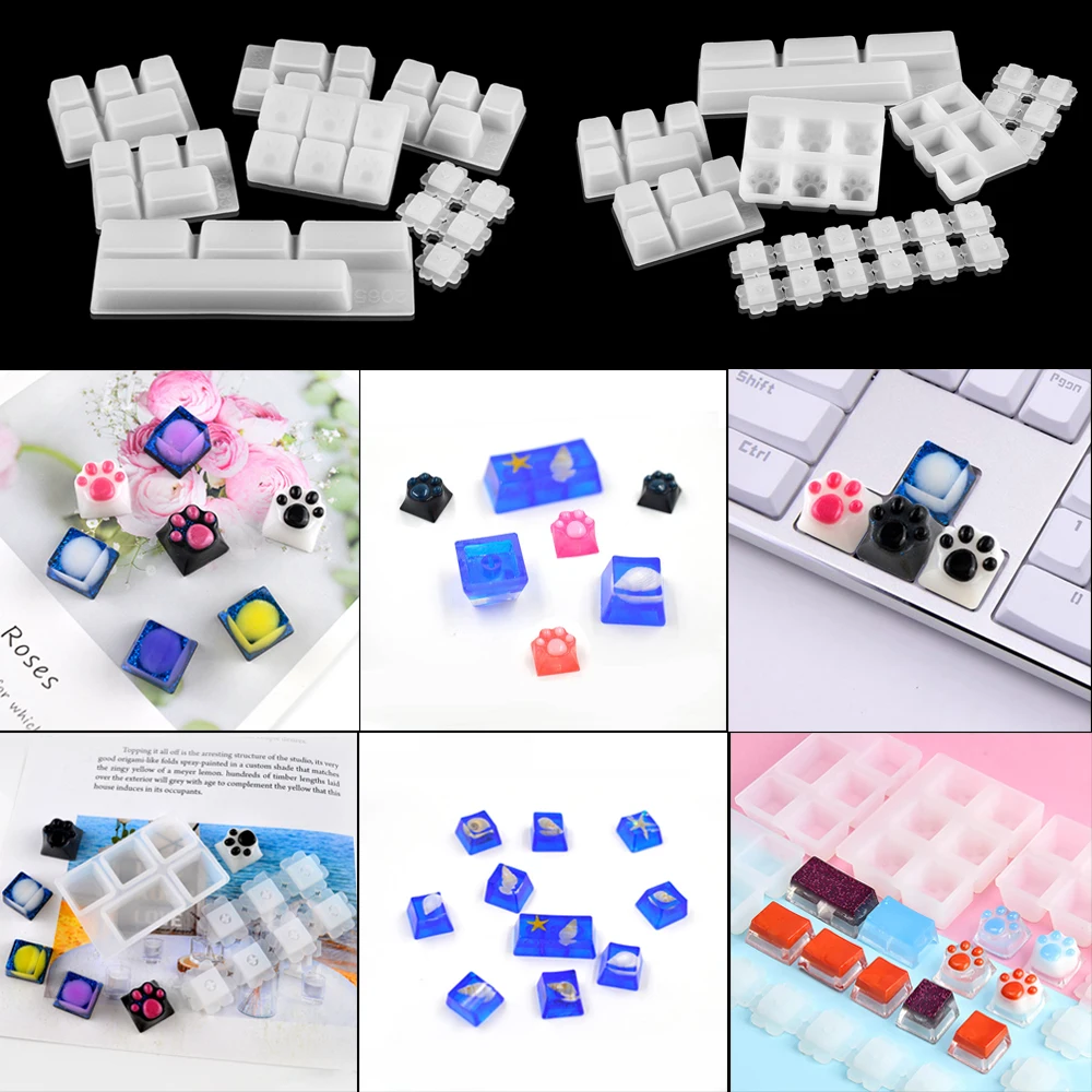 1 шт. белая освещенная контржурным светом механическая клавиатура Кепки силиконовые формы UV с украшением в виде кристаллов прозрачные эпоксидной смолы формы для изготовления своими руками самодельное изделия делая инструменты пресс-формы