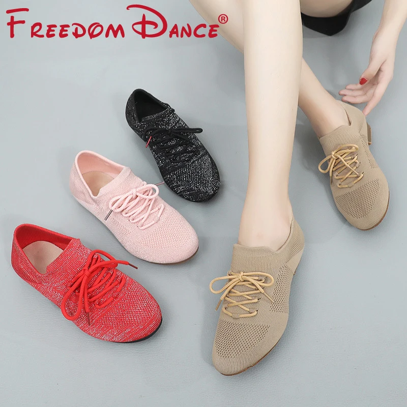 Носки, Танцевальные Кроссовки для женщин, вязанный дышащий супер светильник, танцевальная обувь для джаза, латинская Обувь, балетки с резиновой подошвой для занятий йогой