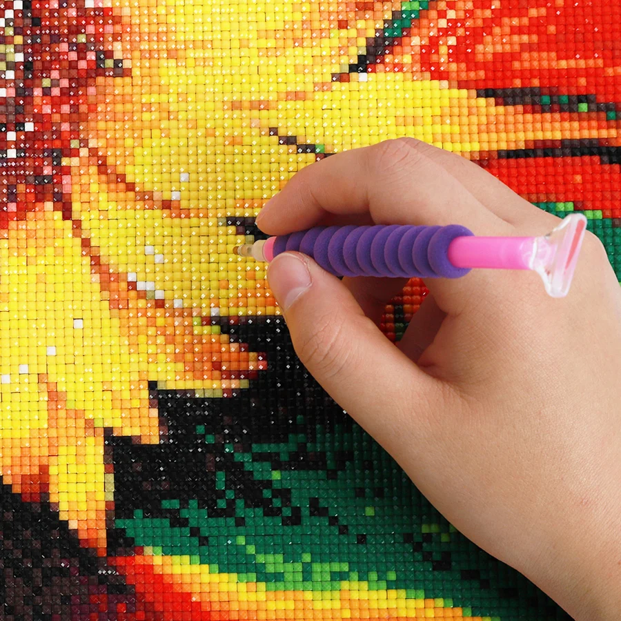 1. Выберите один цвет в соответствии с цветовым кодом и поместите алмазы в тарелку;2. Встряхивание пластины, чтобы сделать алмазы вверх;3. Налейте ручку клеем, а затем приклейте ее к полотну;4. После завершения слегка прижмите бриллианты рукой или книгой, чтобы они были идеально закреплены.Советы: алмазы несъедобные, пожалуйста, держите их подальше от маленького ребенка.