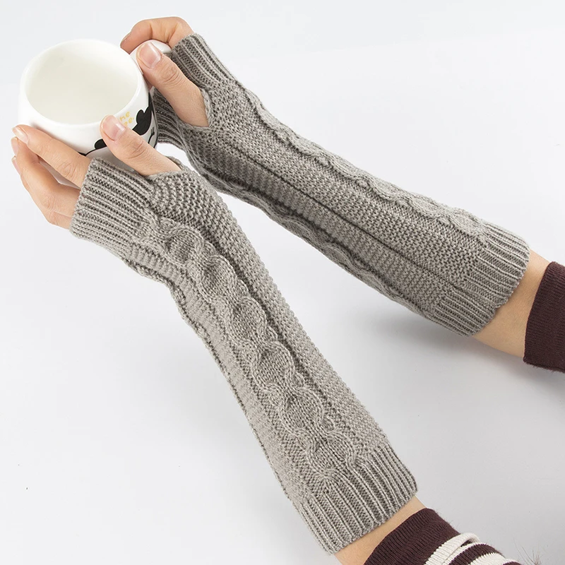 Женские полудлинные осенне-зимние вязаные перчатки с полупальцами теплые перчатки для девочек мягкие митенки