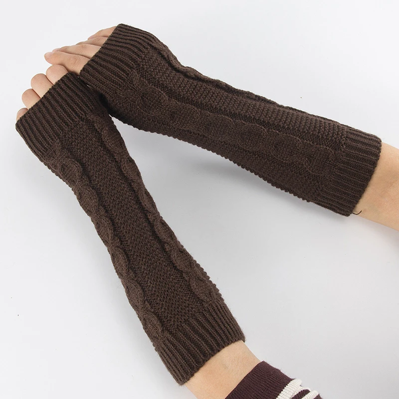 Модные зимние длинные перчатки без пальцев, Повседневные вязаные ру...