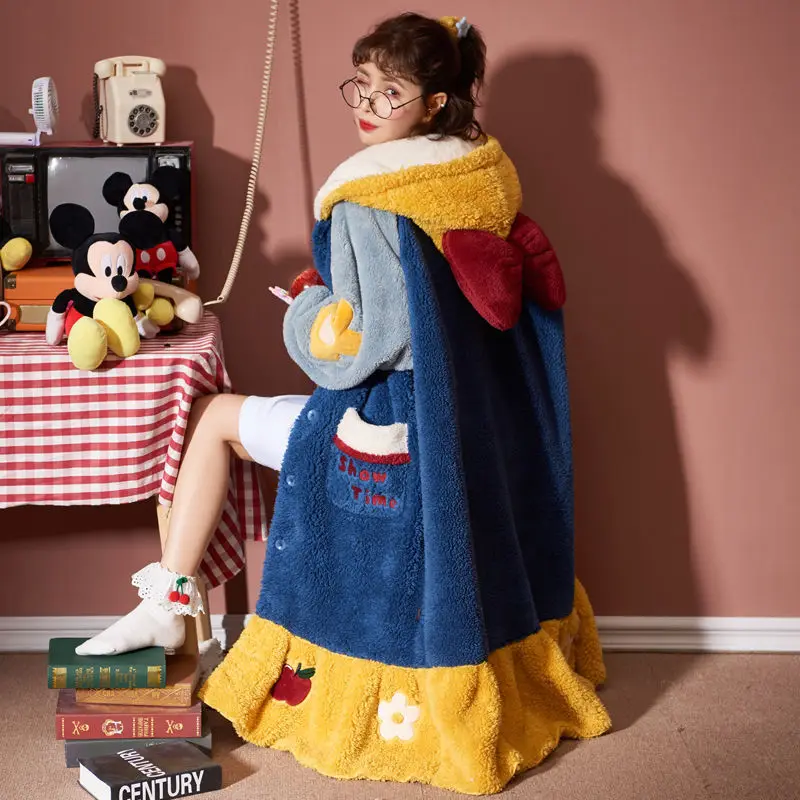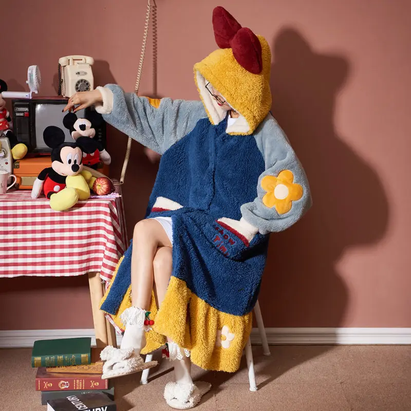 Пижама женская зимняя бархатная, одежда для сна, утепленная длинная ночная рубашка из кораллового флиса, милая Ночнушка с капюшоном, Женская домашняя одежда