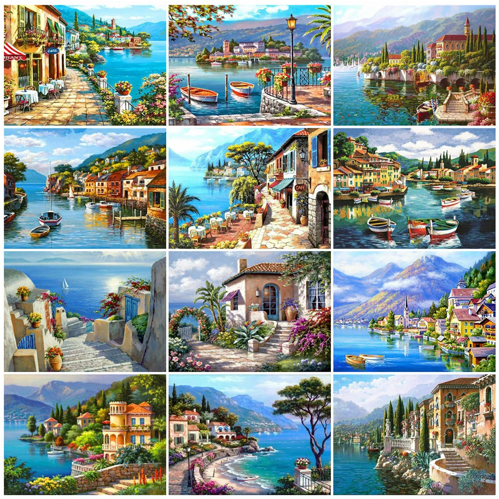 EverShine, Алмазная мозаика изображение города стразы алмазов картина Пейзаж Вышивка крестом Seaside, вышивка бисером, рукоделие