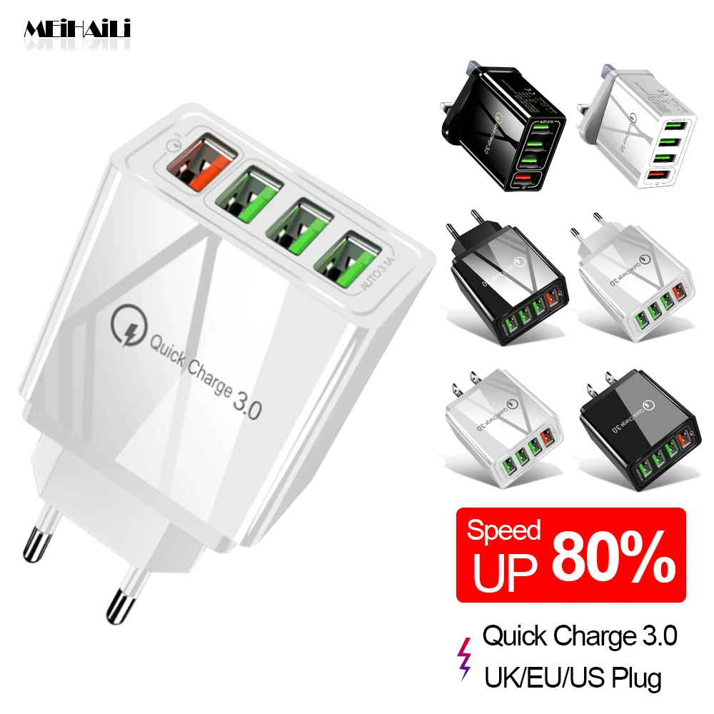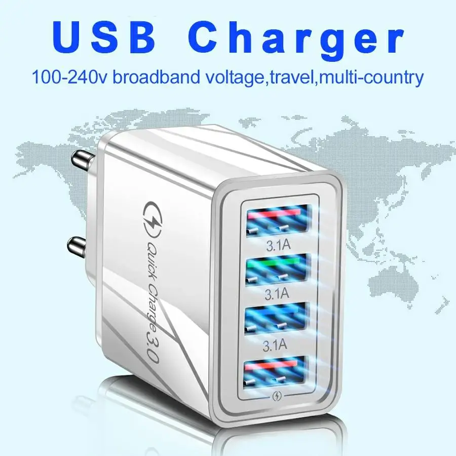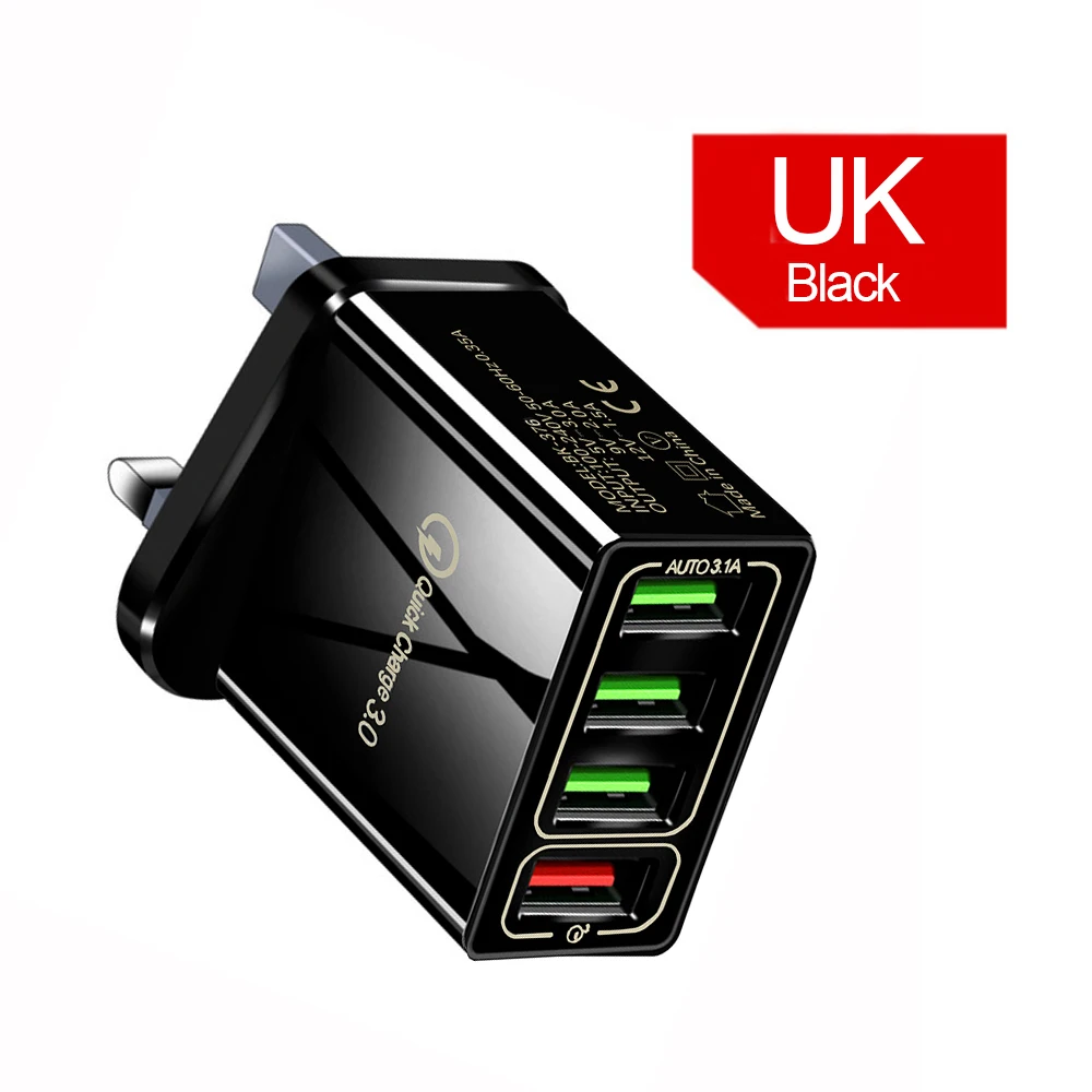 Быстрое зарядное устройство с 4 USB-портами, быстрая зарядка, адаптер для планшетов iPhone, Xiaomi, Huawei, портативные настенные зарядные устройства с вилкой Стандарта США, Великобритании и Европы