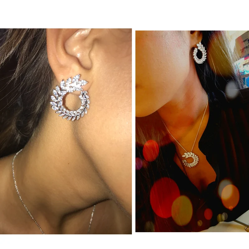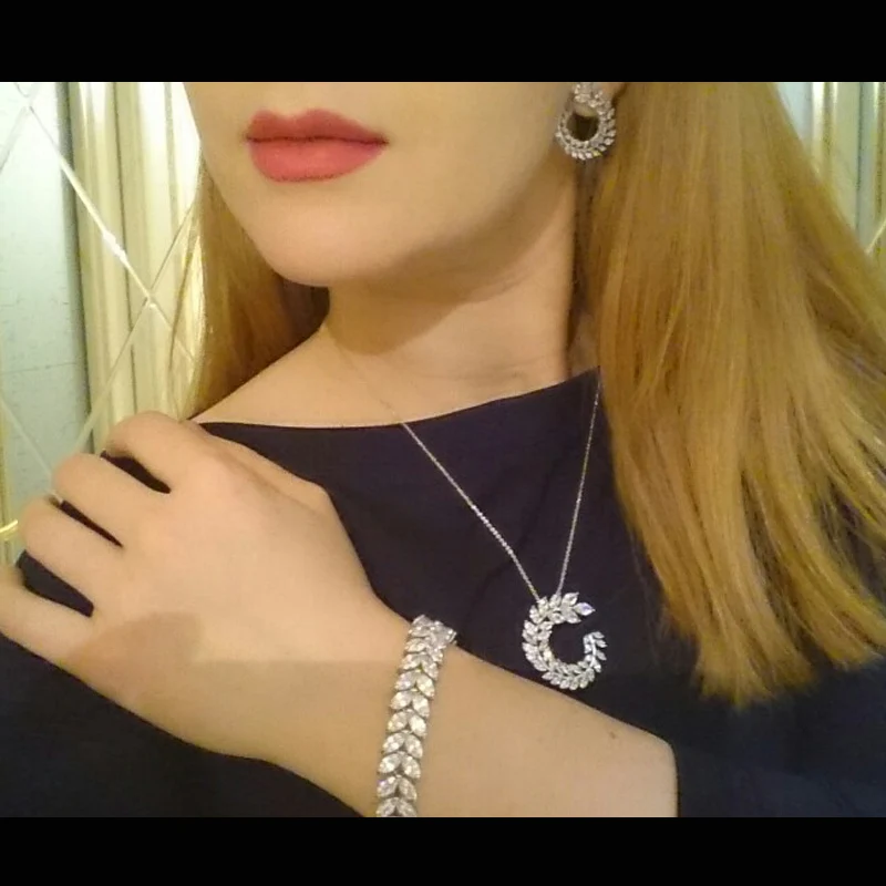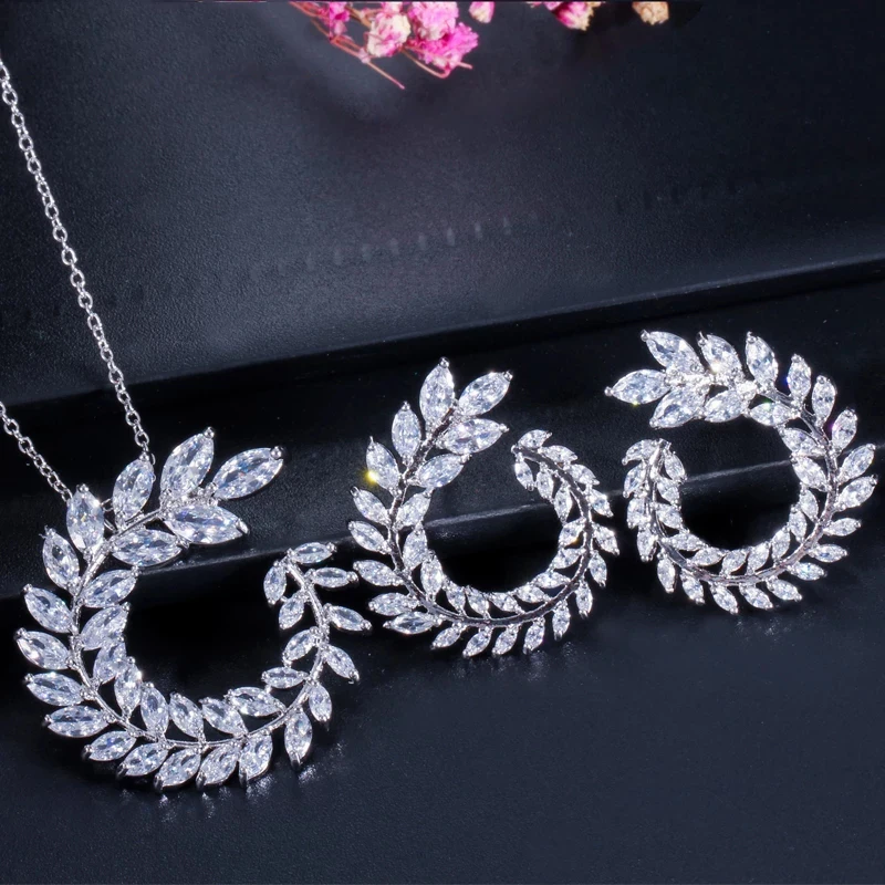 Комплект женских ювелирных украшений, ожерелье и серьги из блестящей оливковой ветки огранки маркиза с кубическим цирконием, 2 шт. в упаковке, J5208
