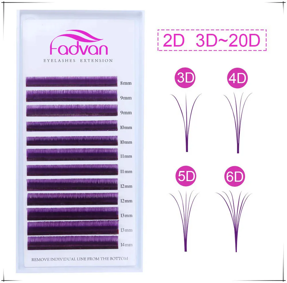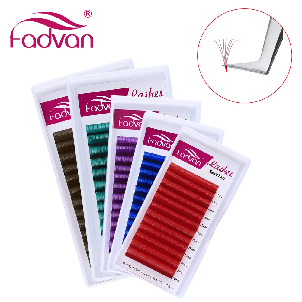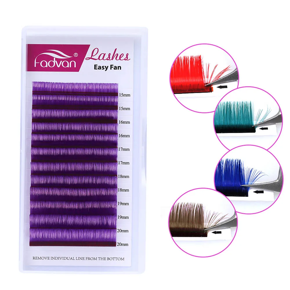 Fadvan цветные ресницы легко веерные красныезеленыесиниезеленыекоричневые авторасцветки макияж, накладные ресницы наращивания 15-20 мм