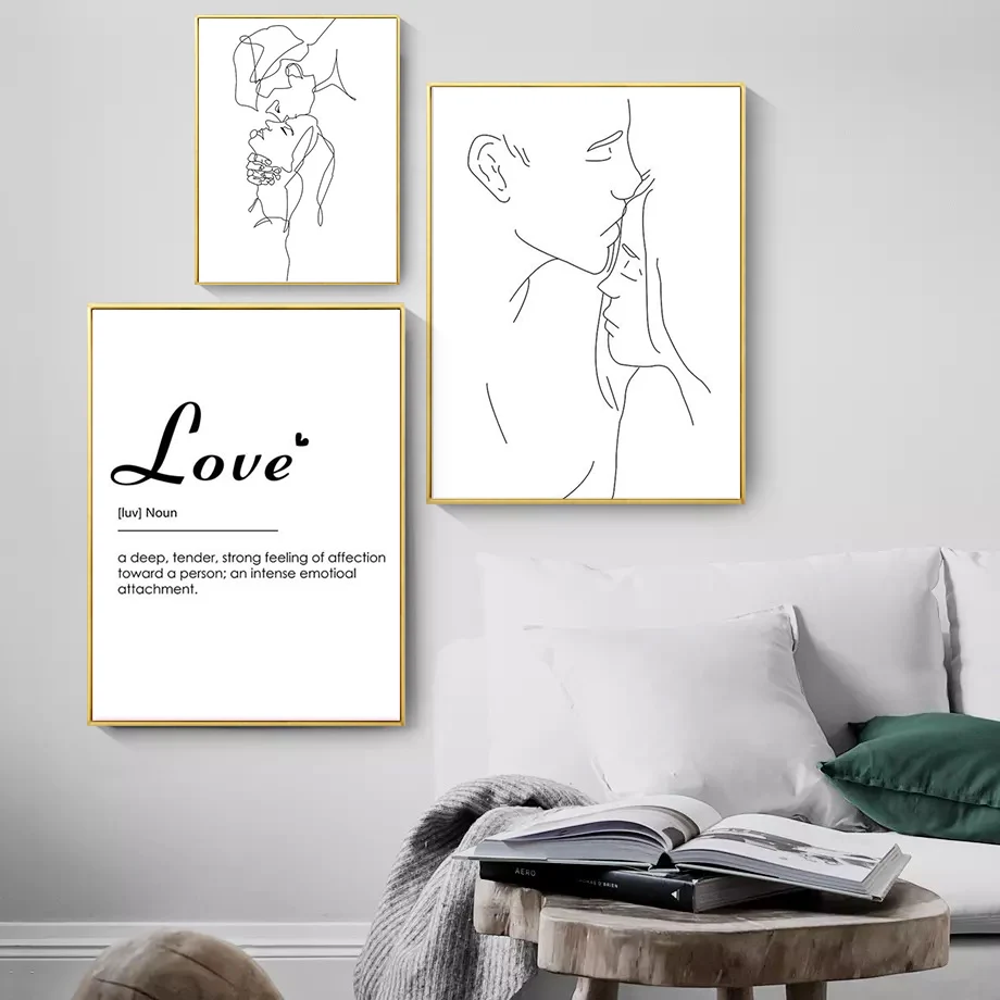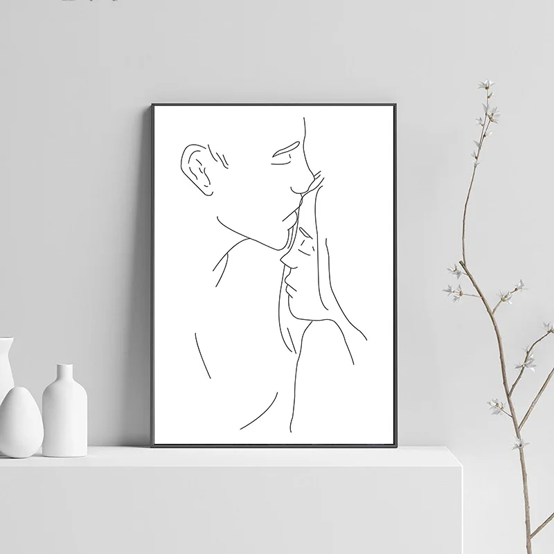 Черно-белая простая Картина на холсте, рисование линий, поцелуй для пар, абстрактные плакаты, Настенная картина, декоративные картины, Современный домашний декор icon star icon star icon star icon star icon star