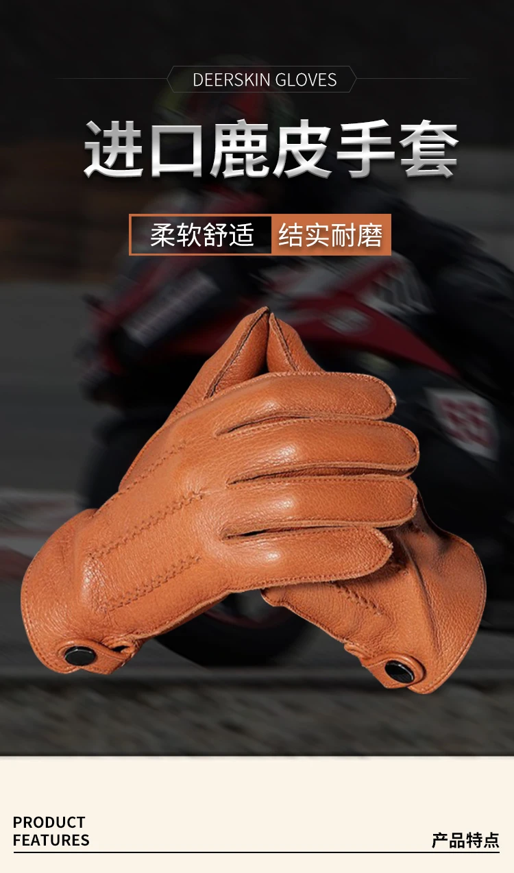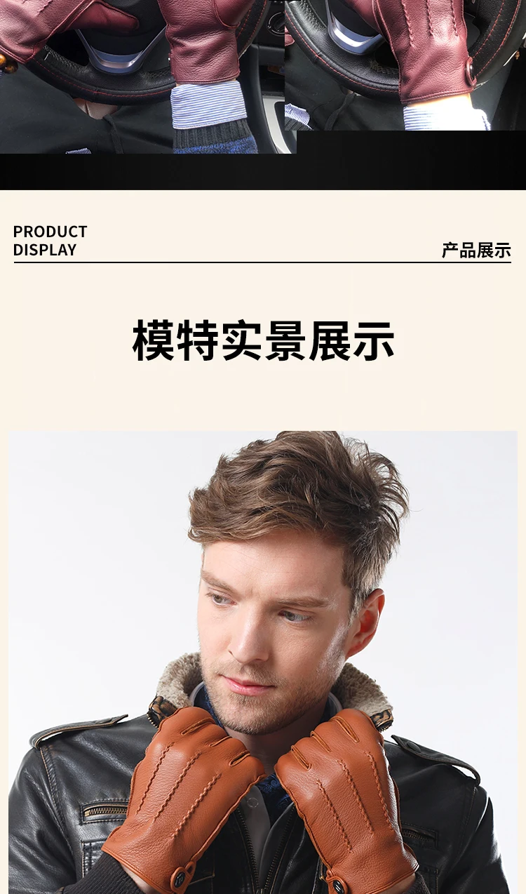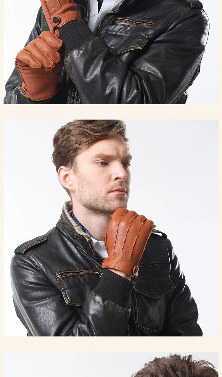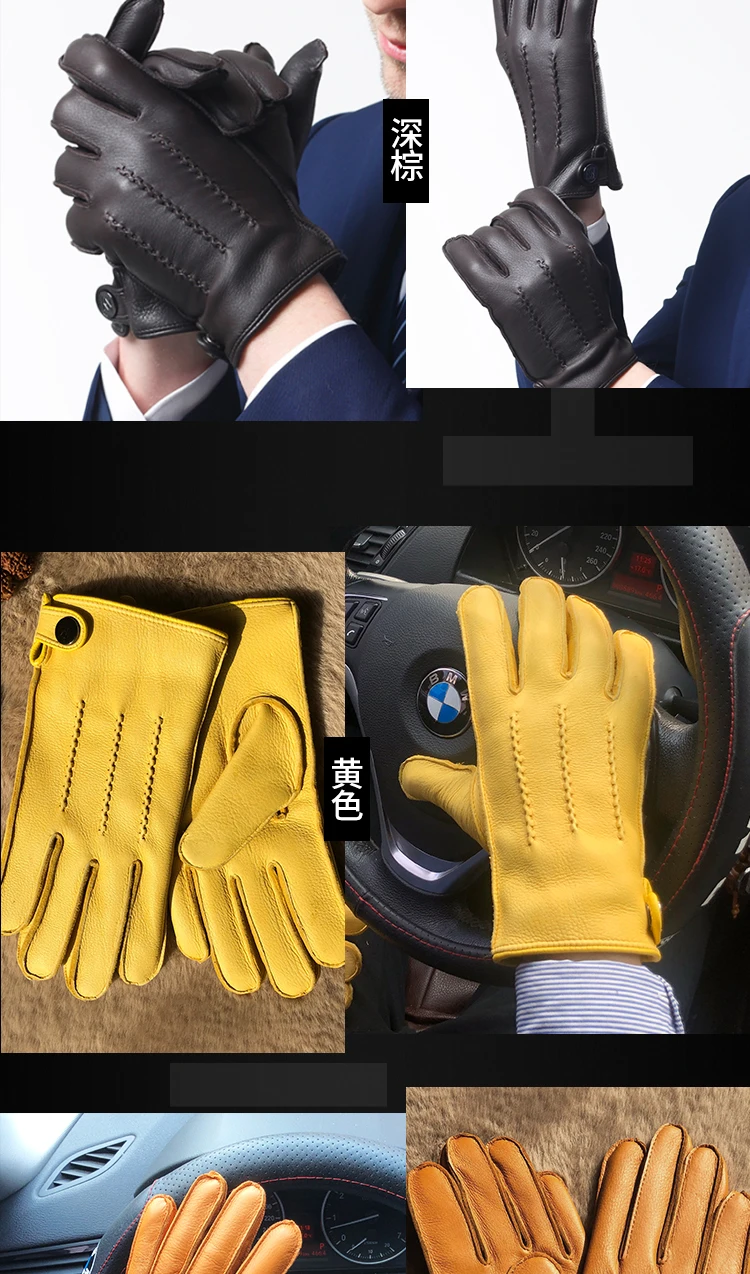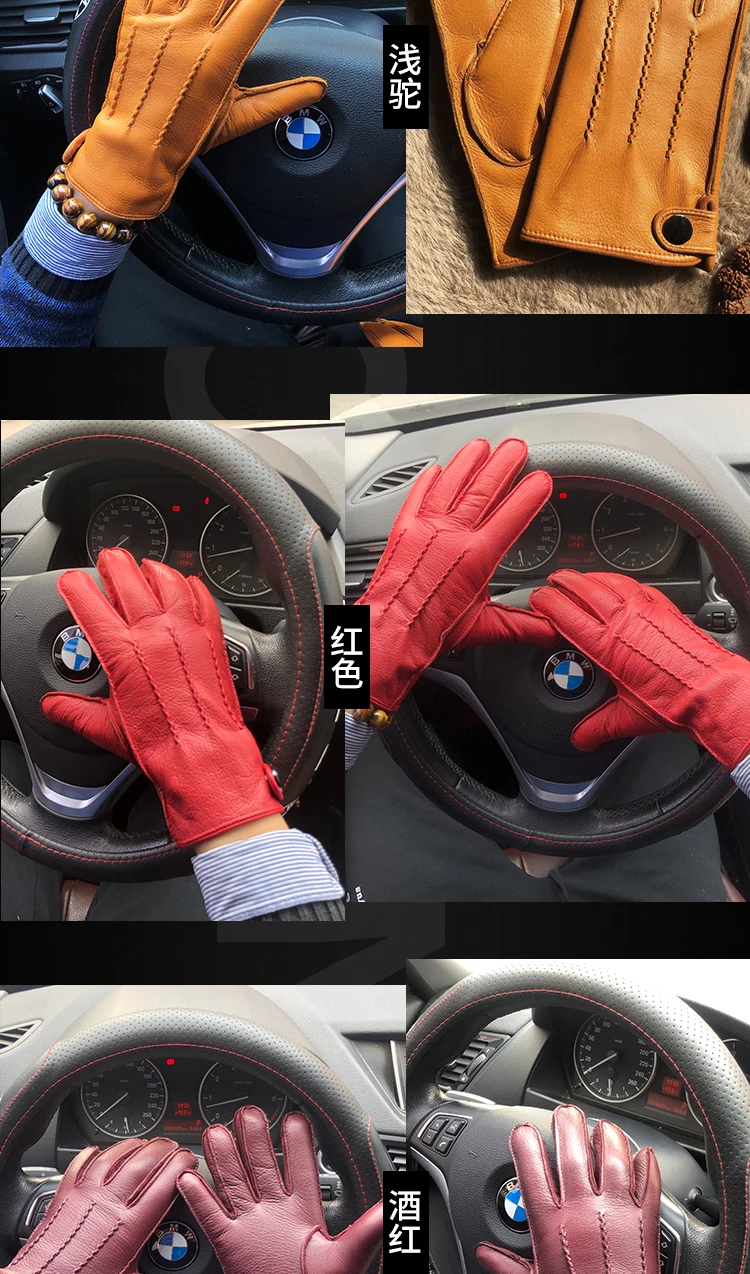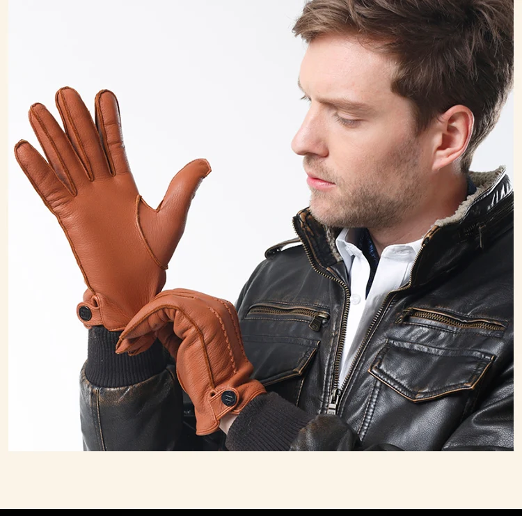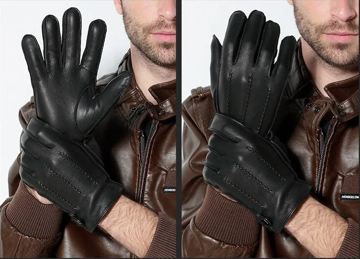 Перчатки мужские из натуральной кожи, с пуговицами и запястьями, зимние теплые, для вождения