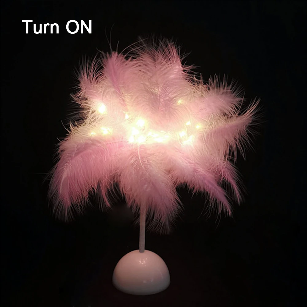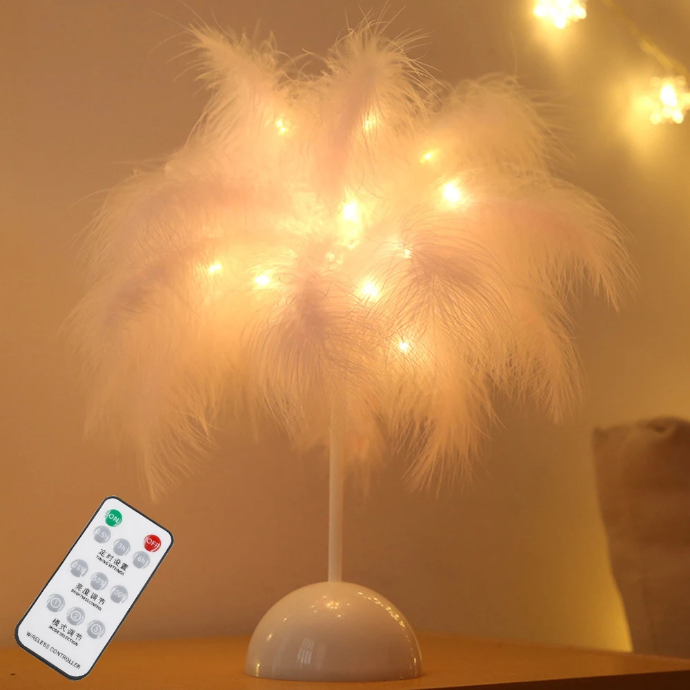 4,5 v ночной Светильник LED лампа перо дистанционного Управление белого розового и красного цветов, дерево абажур Настольный светильник для маленьких девочек на день рождения, свадебные украшения