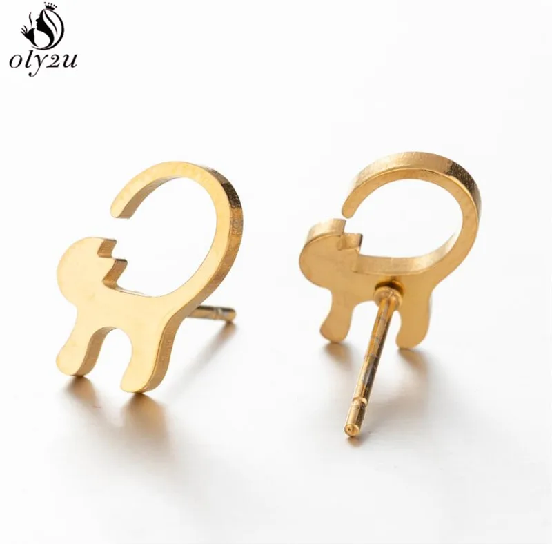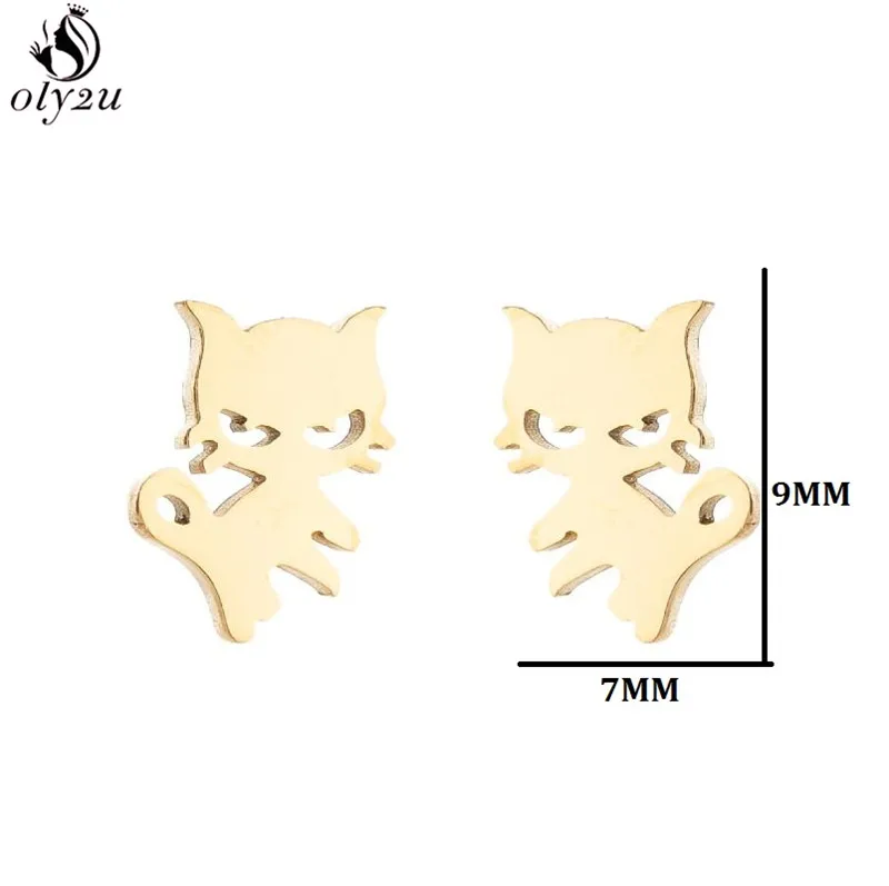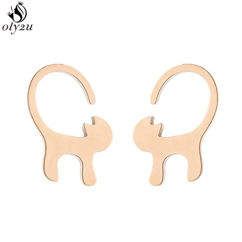 Женские серьги-гвоздики в виде кошек, из нержавеющей стали