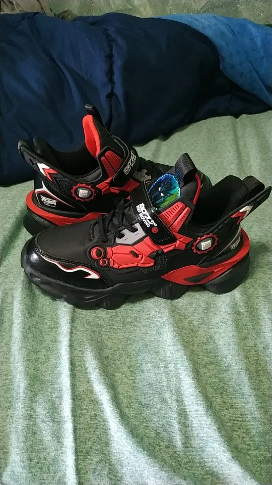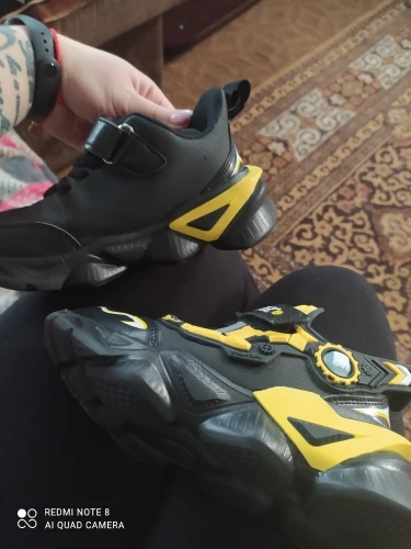Кроссовки соответствуют описанию, все как на картинке, ребенок доволен. правда есть косяки(4,5 фото) нашивка автоботов прошита плохо, также торчат множественные нитки, за одну из которых попыталась слегка потянуть, но сообразила, что дело кончится бедой, надо прошить самой, чтоб не расползлось и все это почему то с левым ботинком, присутствует резкий запах клея,надеюсь выветрится до лета