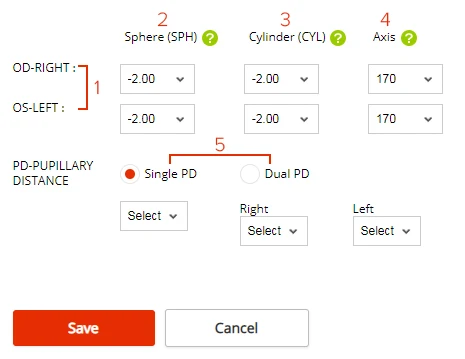 Крытый Сласветильник Блики Регулировка освещения (обеспечивает линзы: 1,56 фотохромные 1,61 фотохромные 1,67 фотохромные) Линзы, которые темнеют при воздействии внешсветильник и остаются чистыми внутри Описание оптометрических данных: Объяснение: 1.OD-RIGHT = Right Eye OS-Left = Left Eye 2. Сфера (SPH)= сферическая, это сила нашего рецепта, "+" Относится к дальнозоркости и дальнозоркости, "-" относится к Близорукость. Если "PL" или "Plano" указаны в месте SPH по вашему рецепту, пожалуйста, введите 0,00 для этой опции. 3. Цилиндр (CYL) = цилиндрический,-степень диоптрий Астигматизм. Этот номер также имеет знаки "+" или "-". Если "DS" или «SPH» или «Сферический» или «PL» указаны в месте CYL, он Означает, что у вас нет астигматизма, и вариант 0,00 Необходимо выбрать. 4. Ось находится в диапазоне от 0 до 180 градусов Ориентация вашего астигматизма. Раньше нет знаков Это номер. 5. Расстояние PD-PUPILLARY = расстояние до зрачка