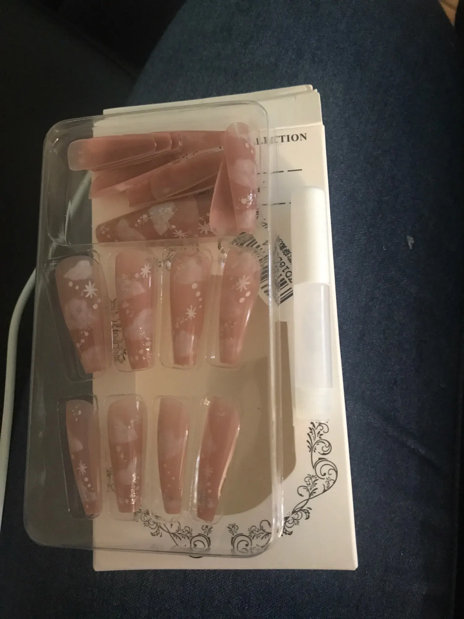 ногти рабочего характера, соответствуют картинке. пришли очень быстро(за 10 дней в Астрахань). в комплекте есть ногти(неожиданно, да?) и клей. не пробовала, но не стала бы доверять клею, так как обычно клей в комплекте ничего не держит. ставлю 10 Андреев Петровых из 10. надеюсь, что не треснул и прослужат долго. возможно буду заказывать ещё