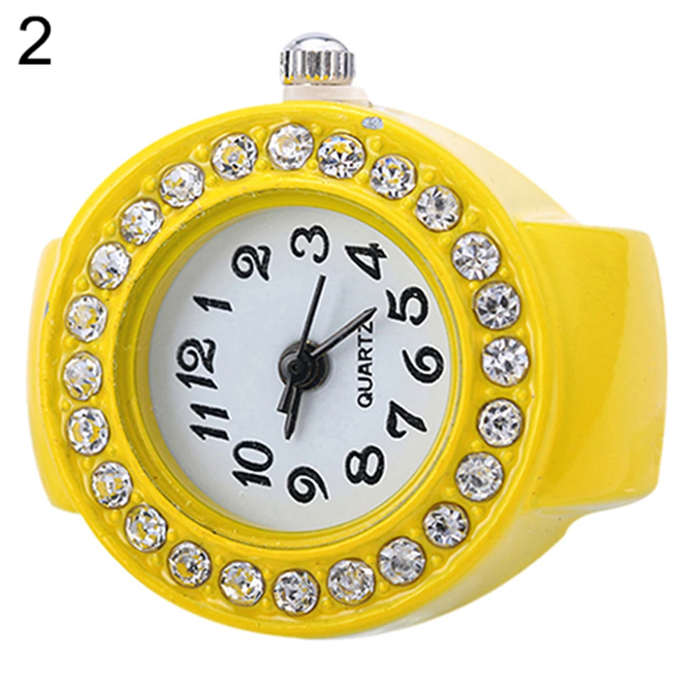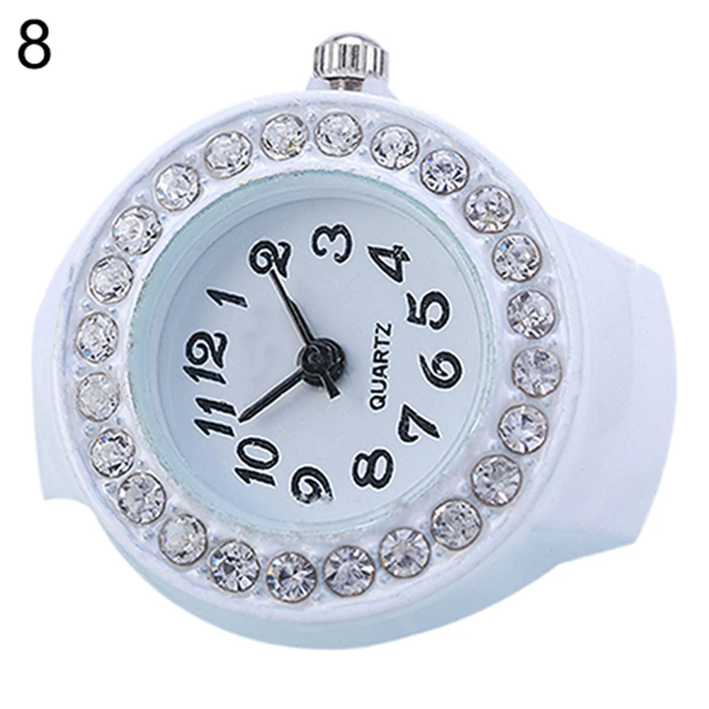 Модные кварцевые палец кольцо женские наручные часы для девочек часы наручные часы с силиконовым ремешком, круглые стразы с эластичной резинкой часы подарок