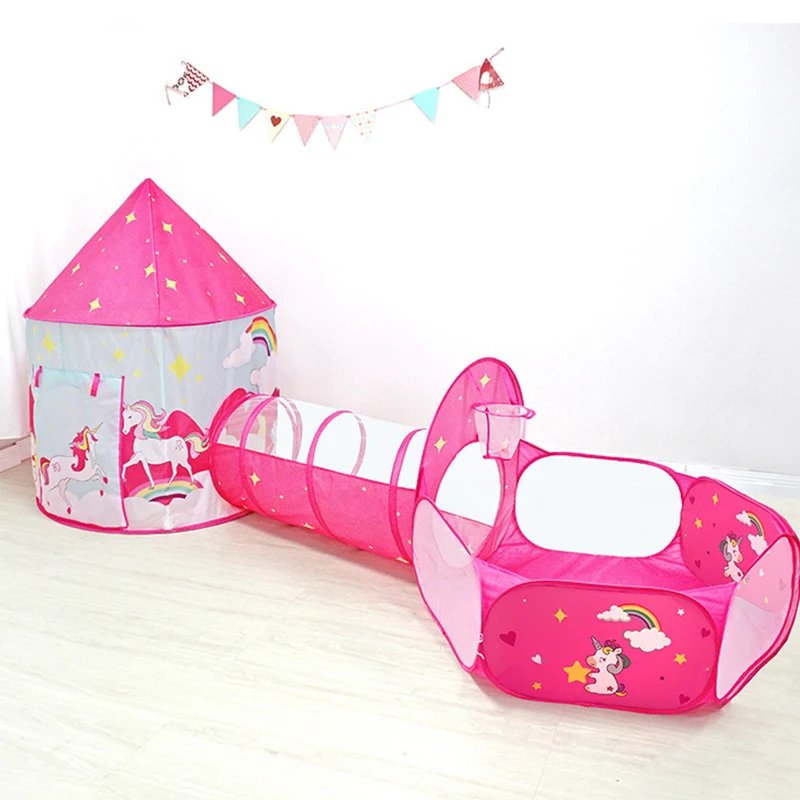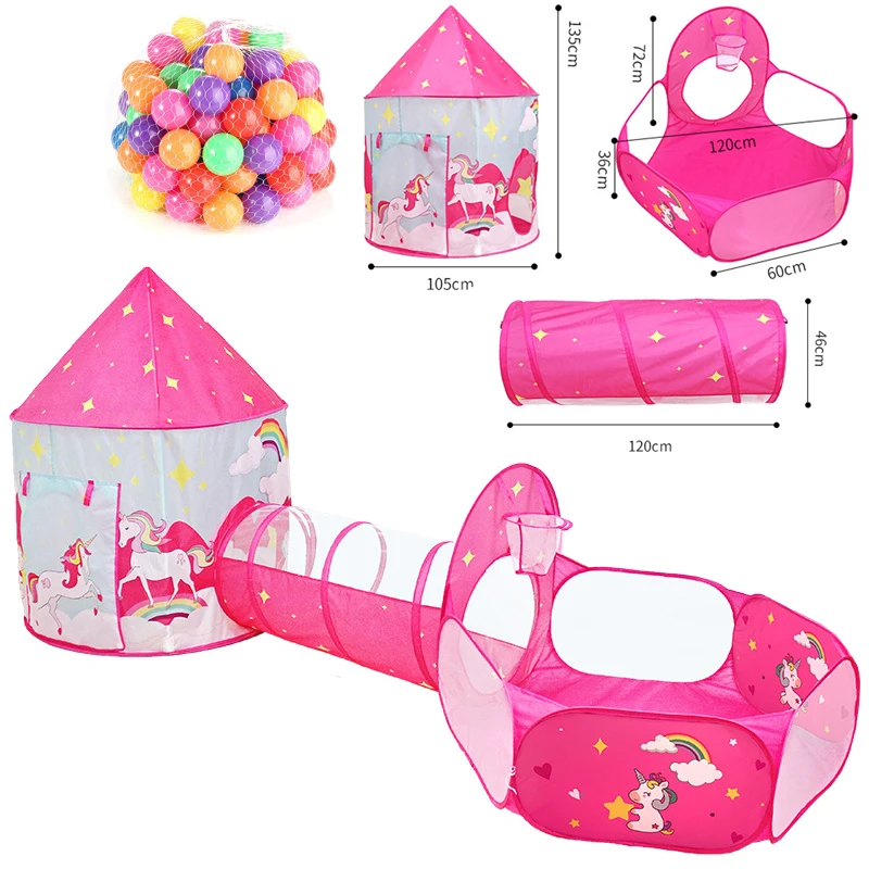 Палатка детская портативная 3 в 1, Игровая палатка для детей из трех предметов, игровой домик в виде единорога, бассейн для шаров, игрушка, туннельная палатка для девочек