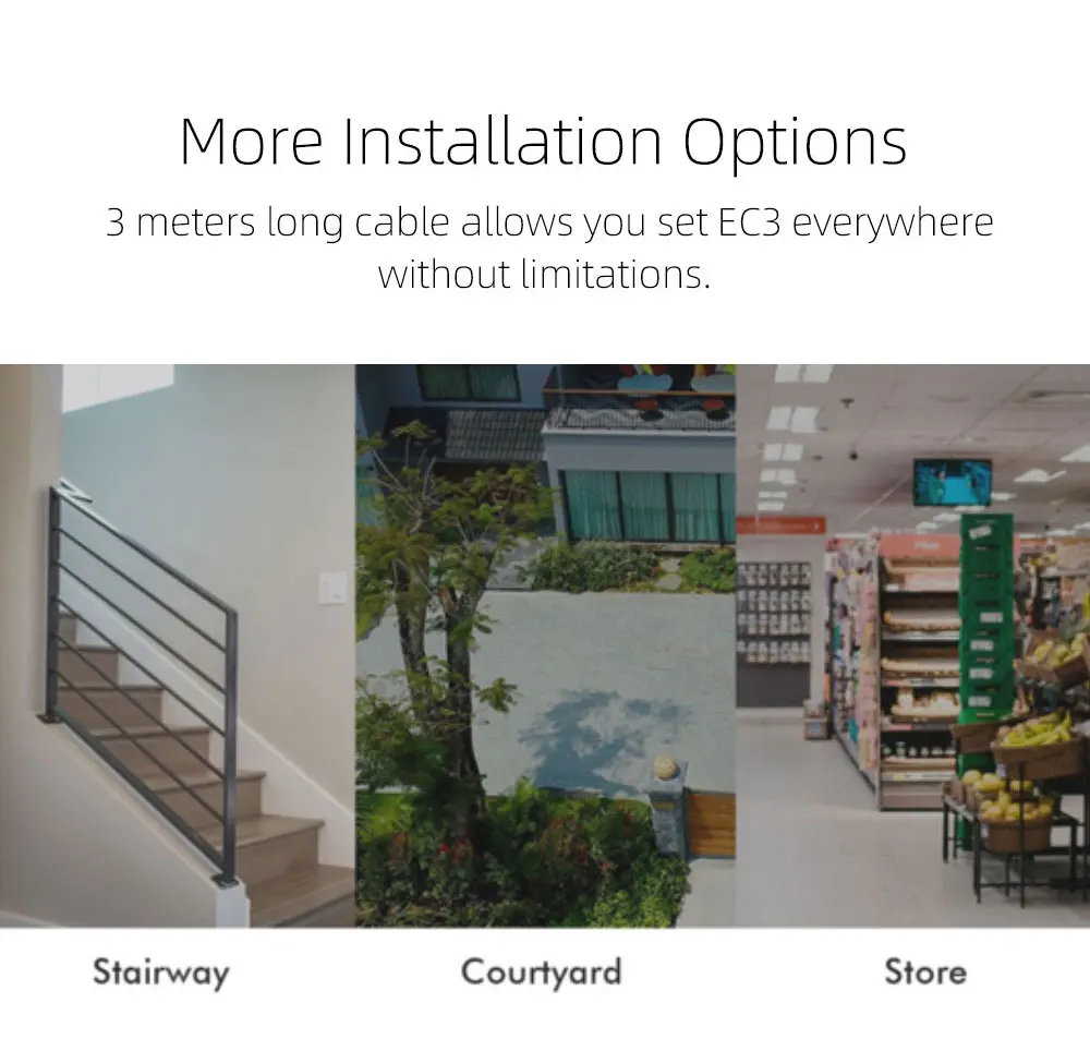 Кабель длиной 3 метра позволяет установить EC3 везде без ограничений.