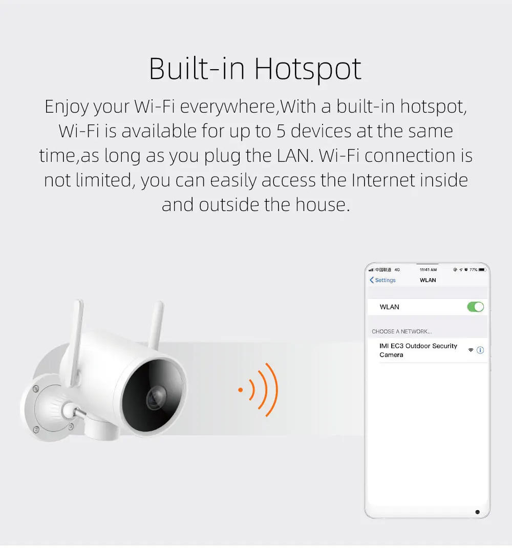 Поворот на 270 ° | Обнаружение человека | Настройка зоны умная сирена | Расширенное ночное видение | Встроенная точка доступа
