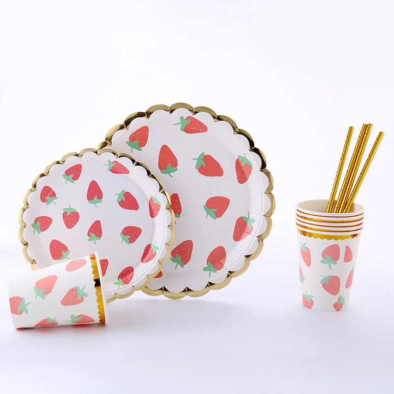 Посуда с изображениями фруктов набор, клубника, лимон, одноразовые тарелки для посуды, салфетки для стаканчиков бумажные соломинки для напитков, Детские принадлежности для дня рождения