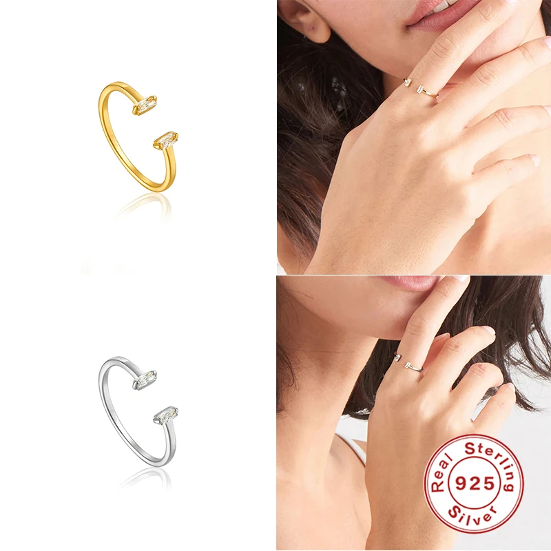 Aide 925 стерлингового серебра открытие регулировочного прямоугольник, циркон, кристалл, минималистский кольца для женщин и девушек, вечерние офисные украшения