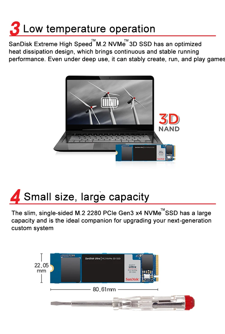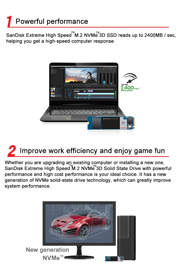 M.2 NVMe 3D Reading speedUP TO 2400MB / s