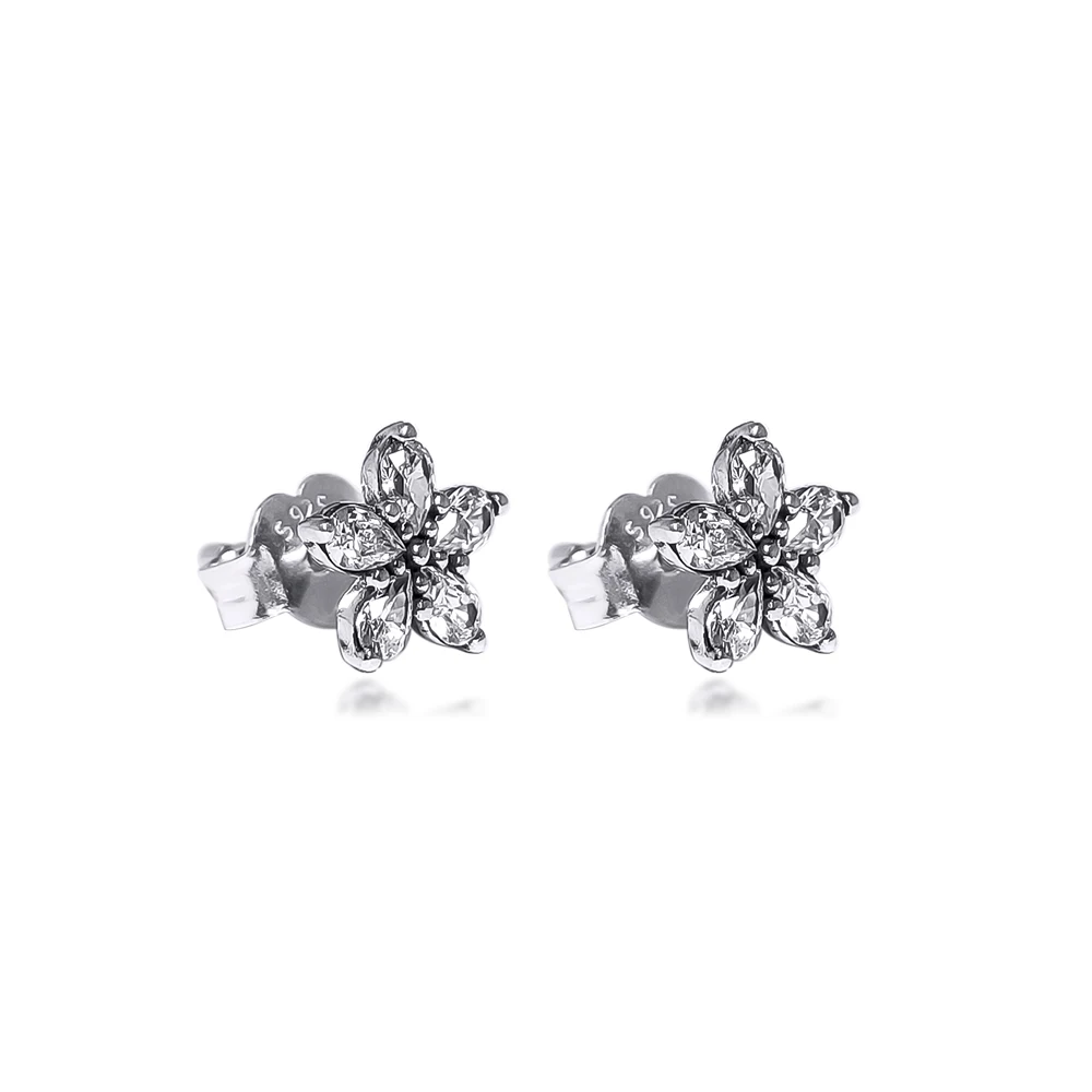 Искрящаяся Снежинка серьги-гвоздики для женщин из натуральной 925 с...