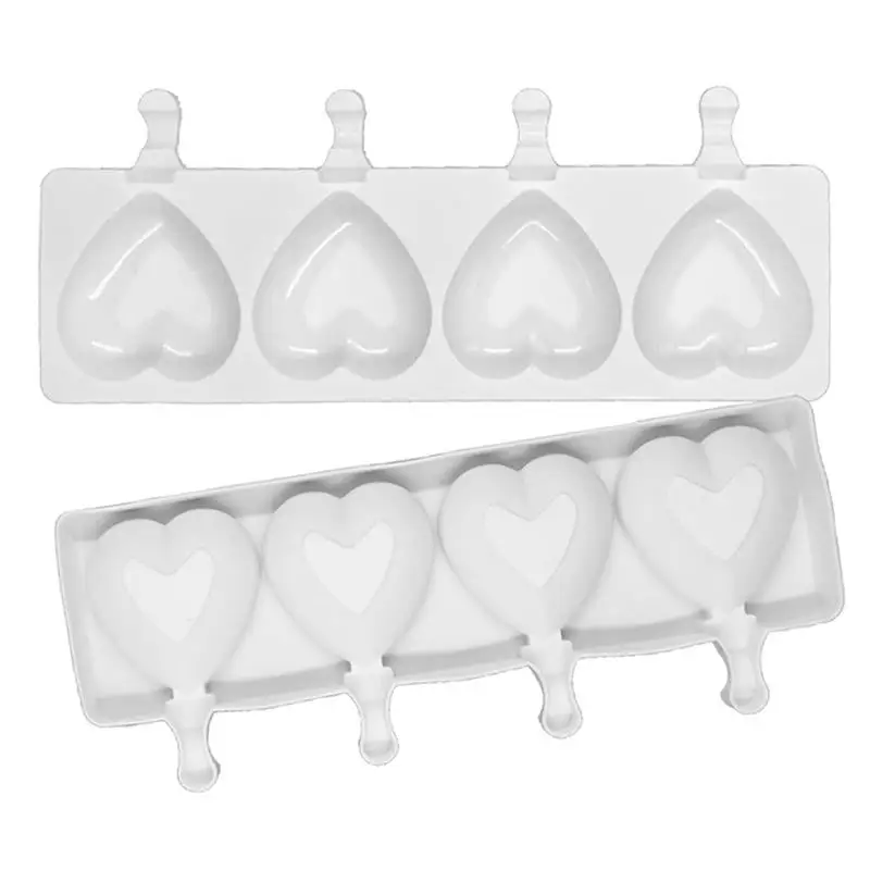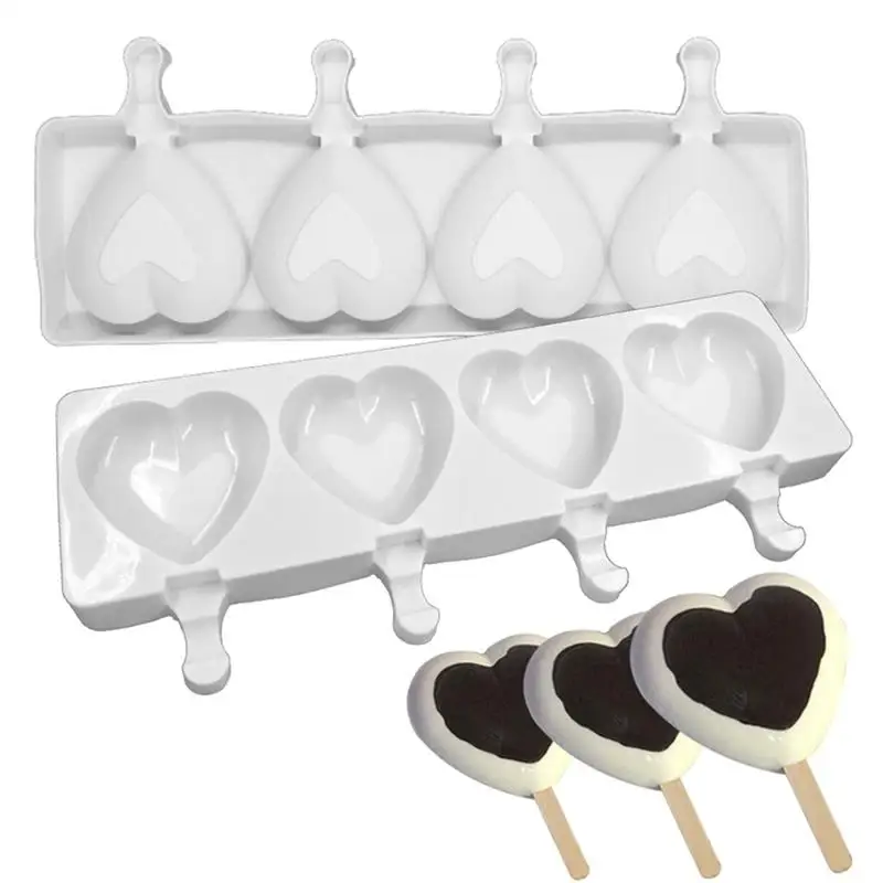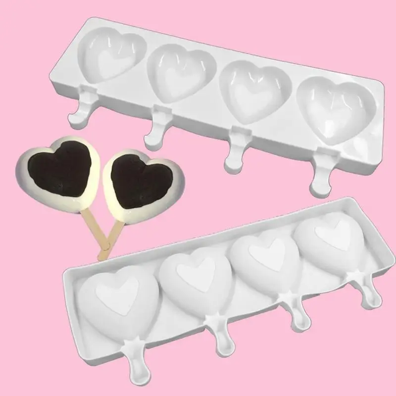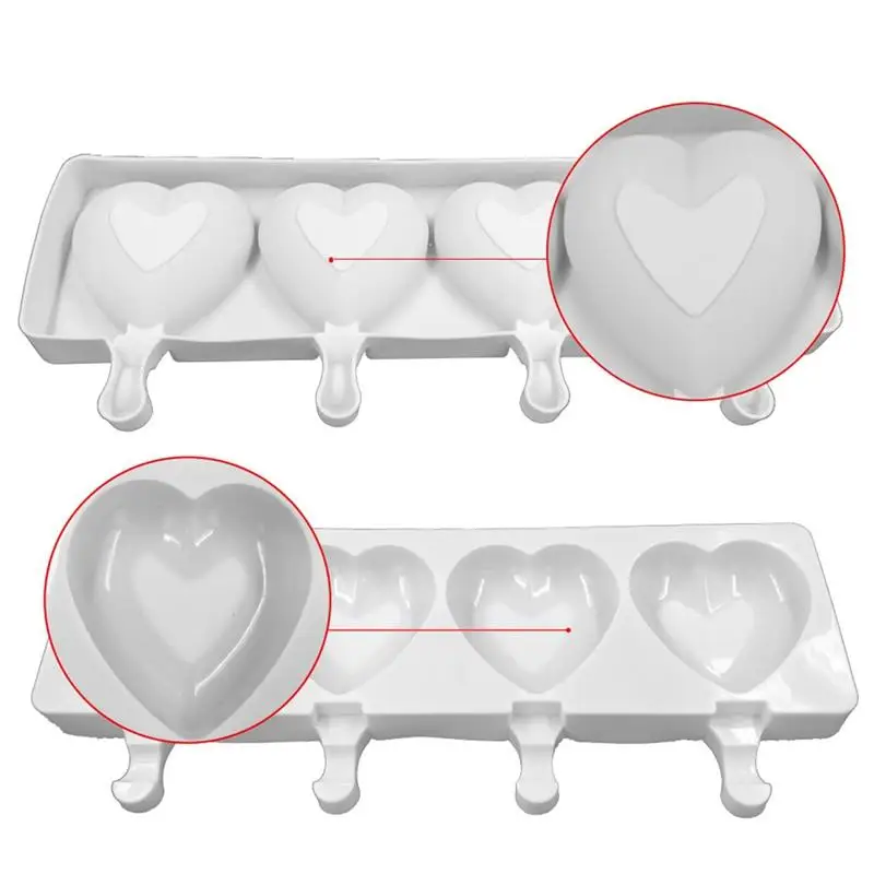 Форма для мороженого, 4 полости, в форме сердца, форма для фруктового льда с палочками, силиконовая форма для торта, инструменты для выпечки десертов